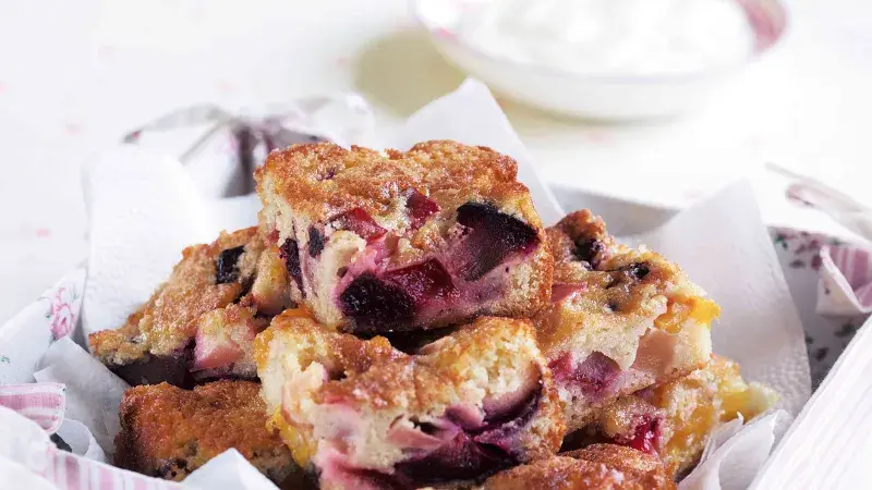 Cobbler je americká klasika. Říká se, že název pochází buď z výrazu ,to cobble’ (dát něco rychle dohromady), nebo ,cobbles’ (dlažební kostky). Zatímco první varianta by (po právu!) vyzdvihovala jednoduchost a rychlost receptu, druhá vypovídá o jeho vzhledu…