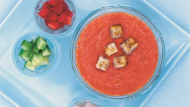 Na tuto studenou zeleninovou polévku původem ze Španělska má snad každá jižanská rodina svůj recept. Základ ale zůstává, a tím je čerstvá zelenina, nejlépe z vlastní zahrádky. Klíčem k úspěchu jsou hlavně chutná, pěkně vyzrálá rajčata.