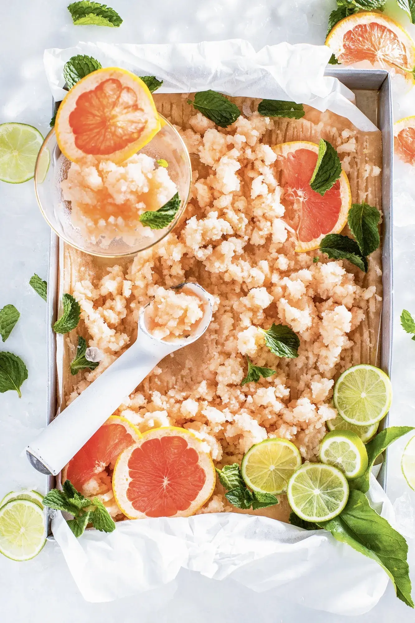 Gin & tonic sorbet s okurkou a grepem je svěží dezert, který si bere to nejlepší z oblíbeného drinku a převádí ho do lehce mrazivé podoby. Osvěžující ledový dezert vzládnete bez zmrzlinovače, ale i s ním.