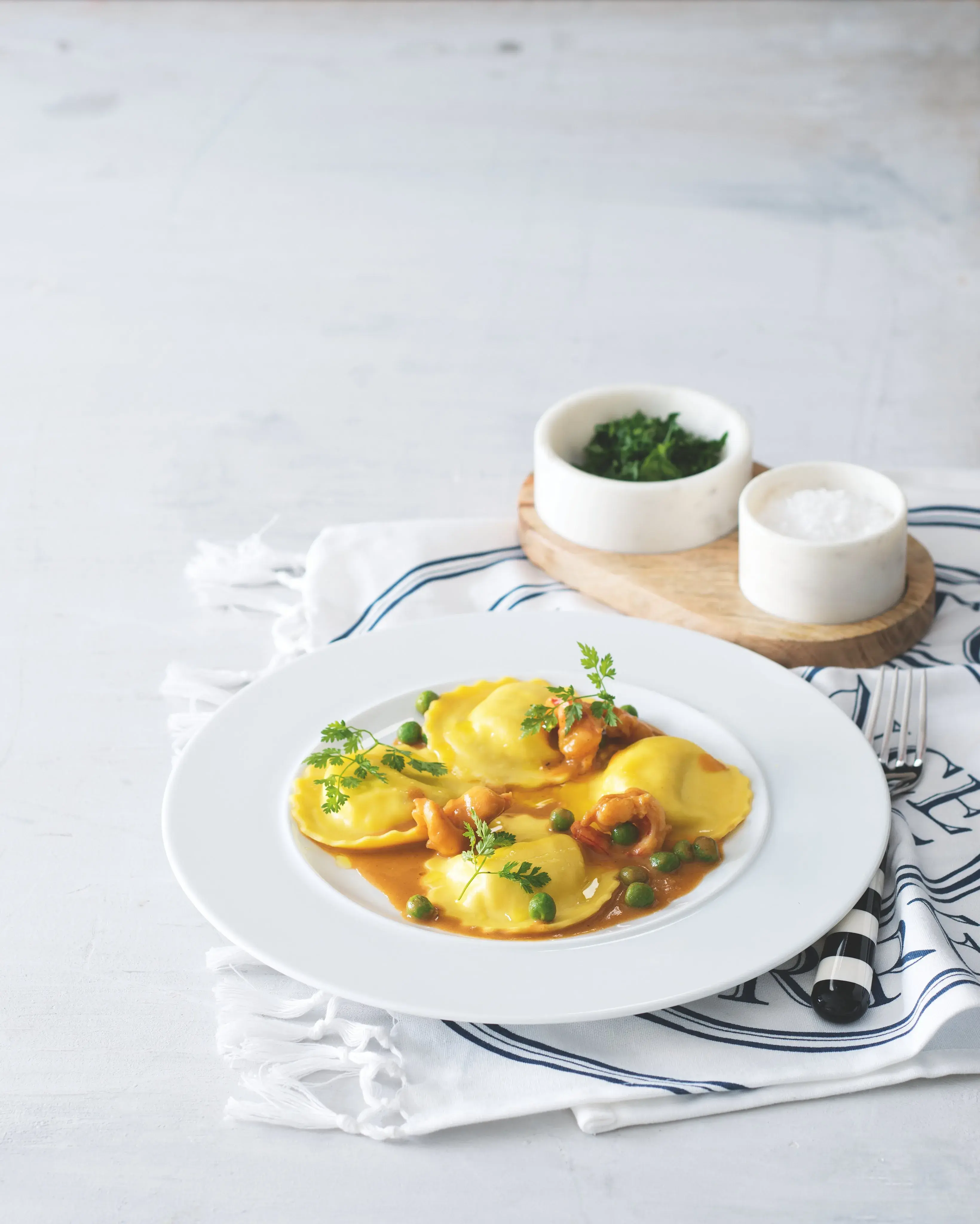 Plněné těstoviny patří ke skvostům italské kuchyně. Neotřelý tvar s vynikající náplní a delikátní omáčkou z krevetových skořápek pro vás připravil šéfkuchař René Vokurka a provede vás úskalími přípravy krok za krokem. Italské slovo girasole (čtěte džirasole, množné číslo girasoli) znamená česky slunečnice – co může být na léto lepšího než tento recept?