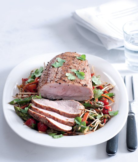 Maso telecího hřbetu je libové, křehké a samo o sobě velmi chutné. Dejte si ho v lahůdkové úpravě se zeleninou.