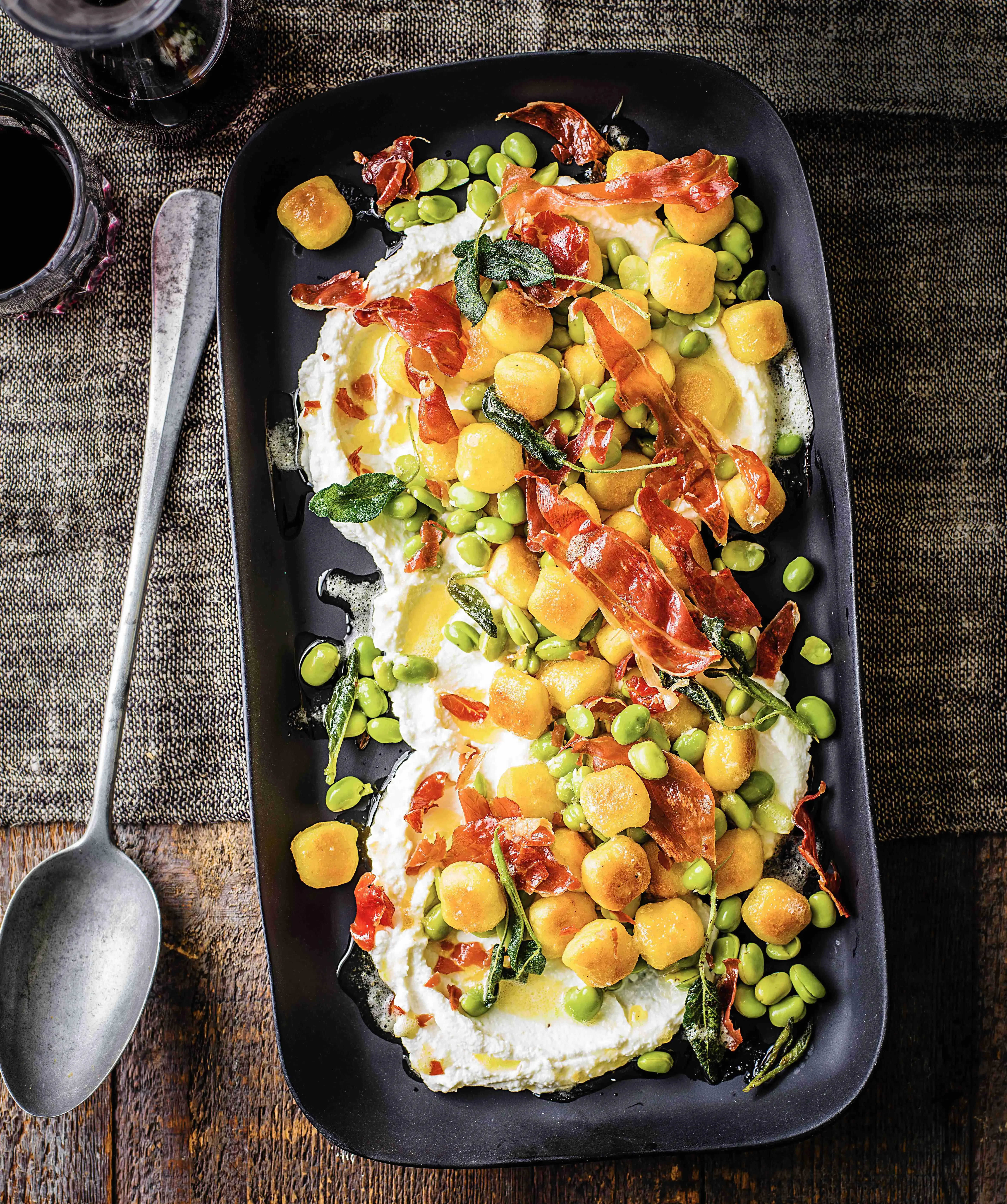 Kombinace svěží citronové ricotty, křupavých noků, šalvěje a parmské šunky je absolutně neodolatelná!