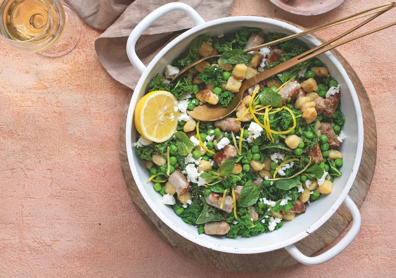 Rychlé, syté a plné jarních chutí – gnocchi opečené dozlatova s křupavou klobáskou, zeleninou a svěží mátou tvoří skvělé jídlo na každý den. Stačí pár běžných surovin, trochu hravosti při vaření a za chvíli máte na stole voňavé a chutné jídlo, které potěší celou rodinu.
