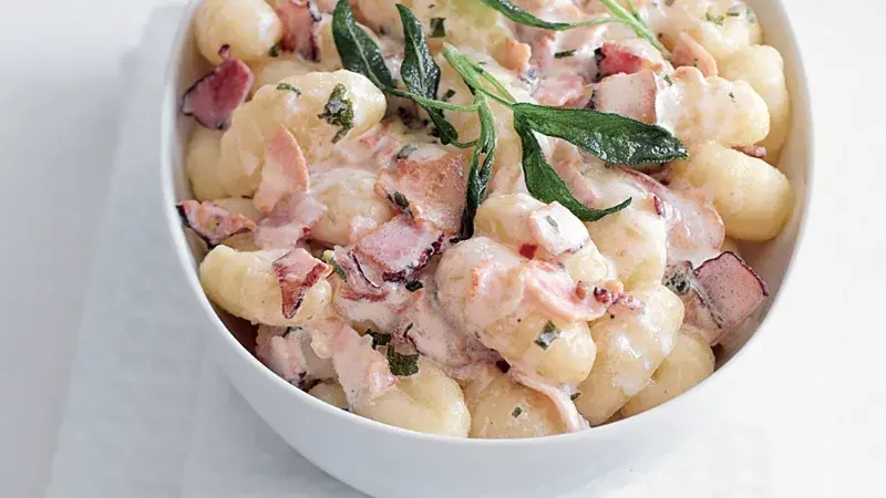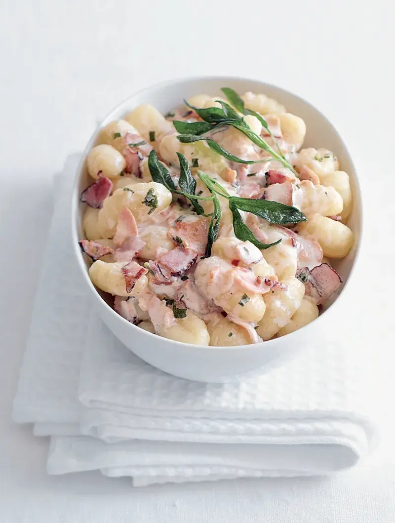 Skvělá hutná omáčka se slaninou a sýrem a gnocchi jsou to pravé po dlouhém výletě.