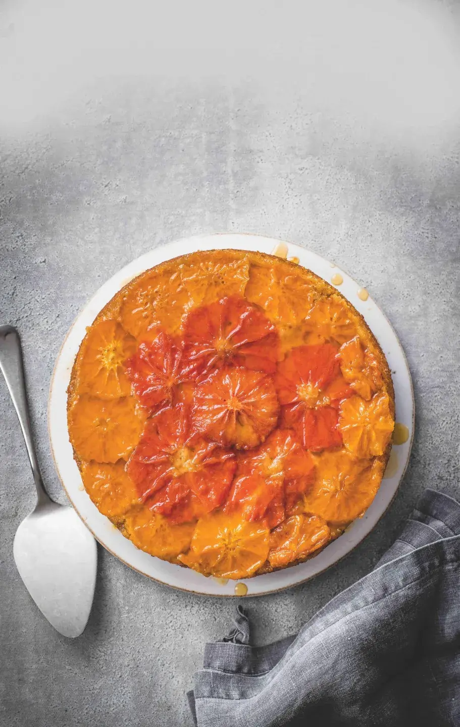Upečte si kousek slunce! Vláčný obrácený koláč s citrusy dokáže prozářit (a osladit) i ten nejzamračenější den. Sladké klementinky zdatně vyvažuje nahořklý grep – ladí jim to spolu náramně.