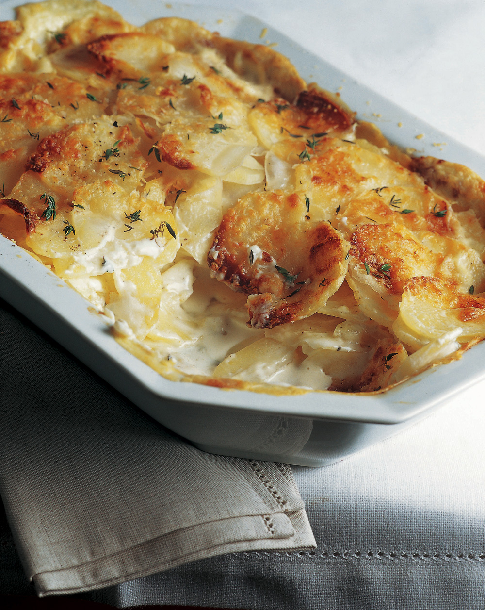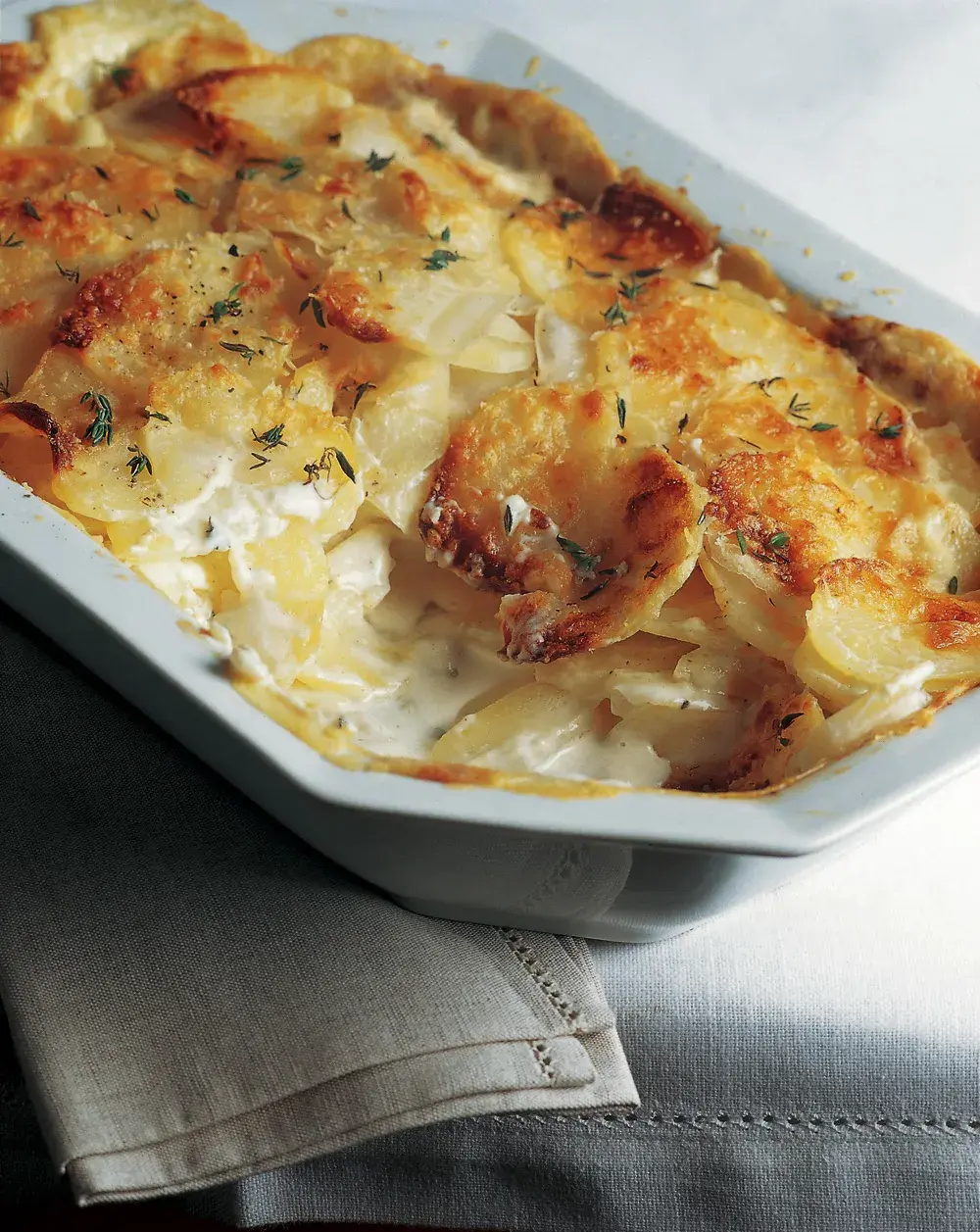 Zapečené brambory spojené hustou smetanovou omáčkou, vonící tymiánem a dotažené trochou pikantního parmazánu – tahle podoba ‚francouzských brambor‘ prostě nemá chybu. Recept na gratinované brambory se šalotkou a parmazánem je snad ten nejlepší, jaký jsme v poslední době připravovali. A rozhodně stojí za vyzkoušení – ať už jako příloha, nebo syté a bezmasé jídlo.
