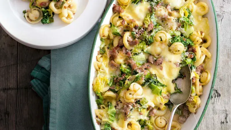 Výborný tip na prázdninový rodinný oběd – kapusta dodá vitaminy, klobáska sytost a sýr lahodnou krustičku.