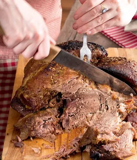Maso můžete podávat s opečenými bramborami, ale Paul Day by si ho dal v sendviči; podával by ho v pěkné měkké housce na hamburger, nejlépe s domácím salátem Coleslaw s nastrouhanou červenou řepou a majonézou naředěnou jogurtem.