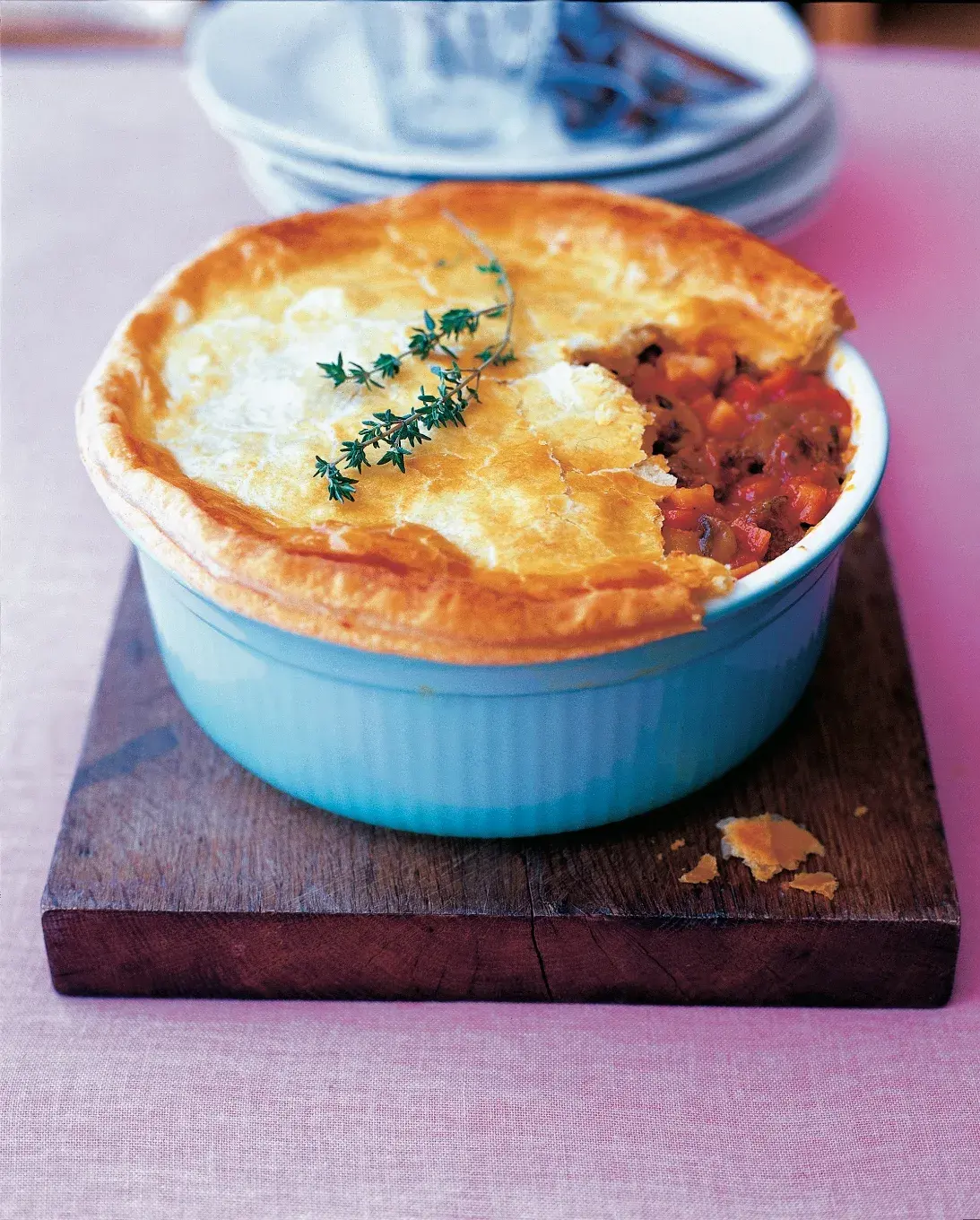 ‚Poklička‘ z listového těsta není pouhou ozdobou – má také svůj účel: maso pod ní je měkounké, jak jen dušené maso může být, ale díky otvorům v těstě zároveň propečené.