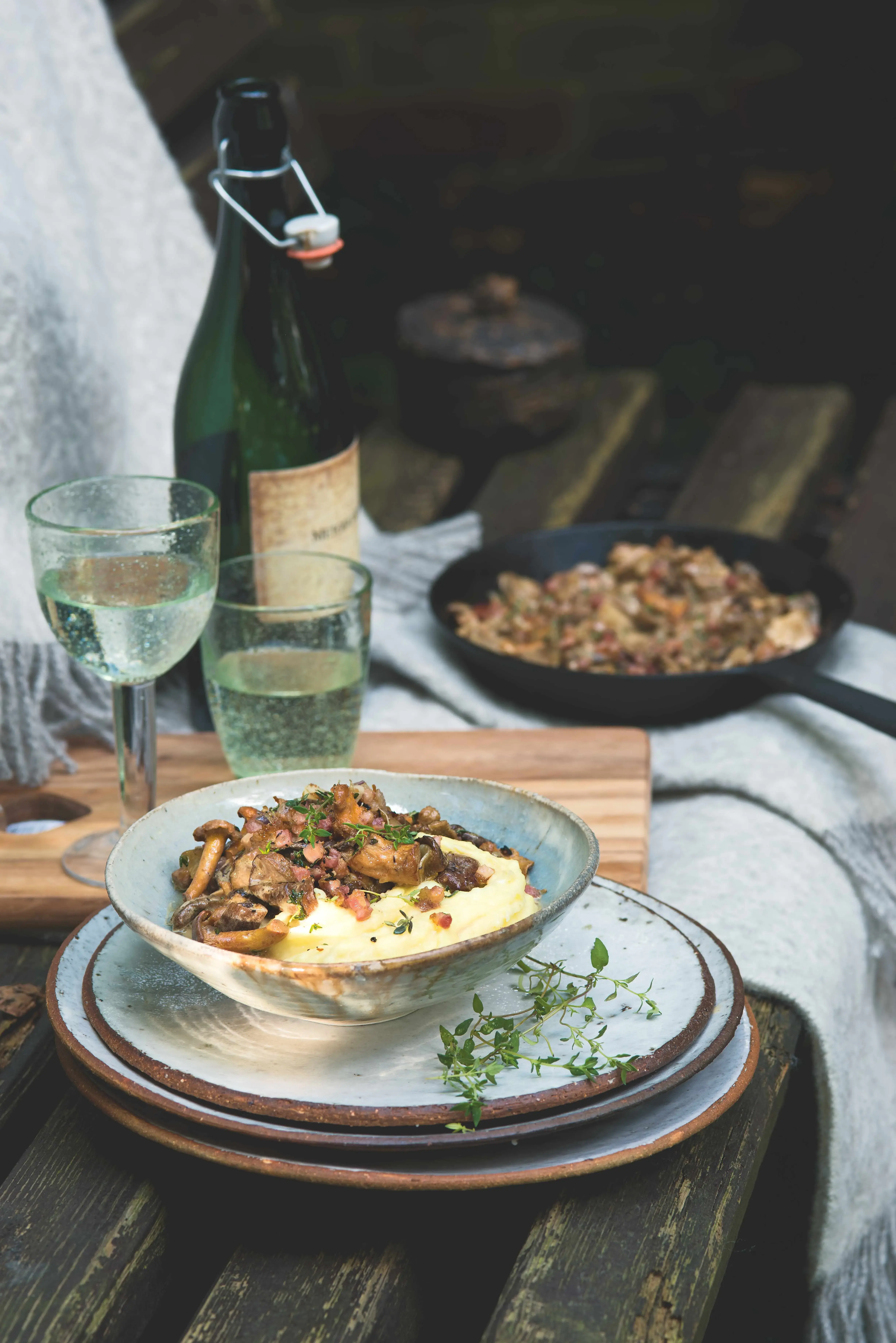 Ragú je fajn i ve vegetariánské verzi a bez brandy. Kvůli té kyselosti z citronu omáčka nápadně připomíná kulajdu, takže by mi tam spíš než tymián chuťově vyhovoval kopr. Kombinace čerstvých a sušených hub je za mě určtě dobrý nápad.