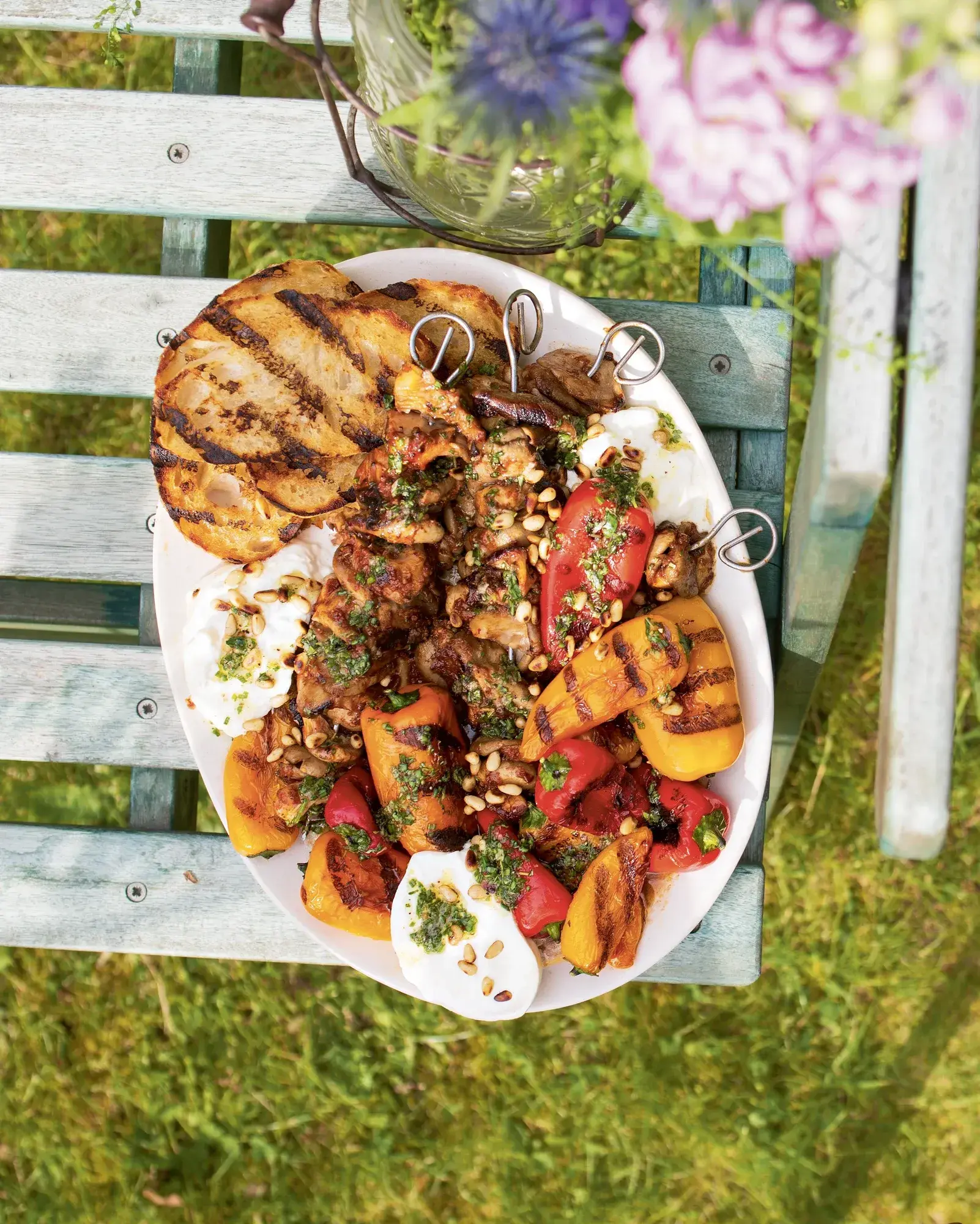 Houbové špízy se salátem z grilovaných paprik a burratou jsou letní trefa do černého. Šťavnaté houby vonící kouřem z grilu, sladké papriky a sametová burrata – tohle trio funguje na jedničku. Lehké, svěží a tak dobré...