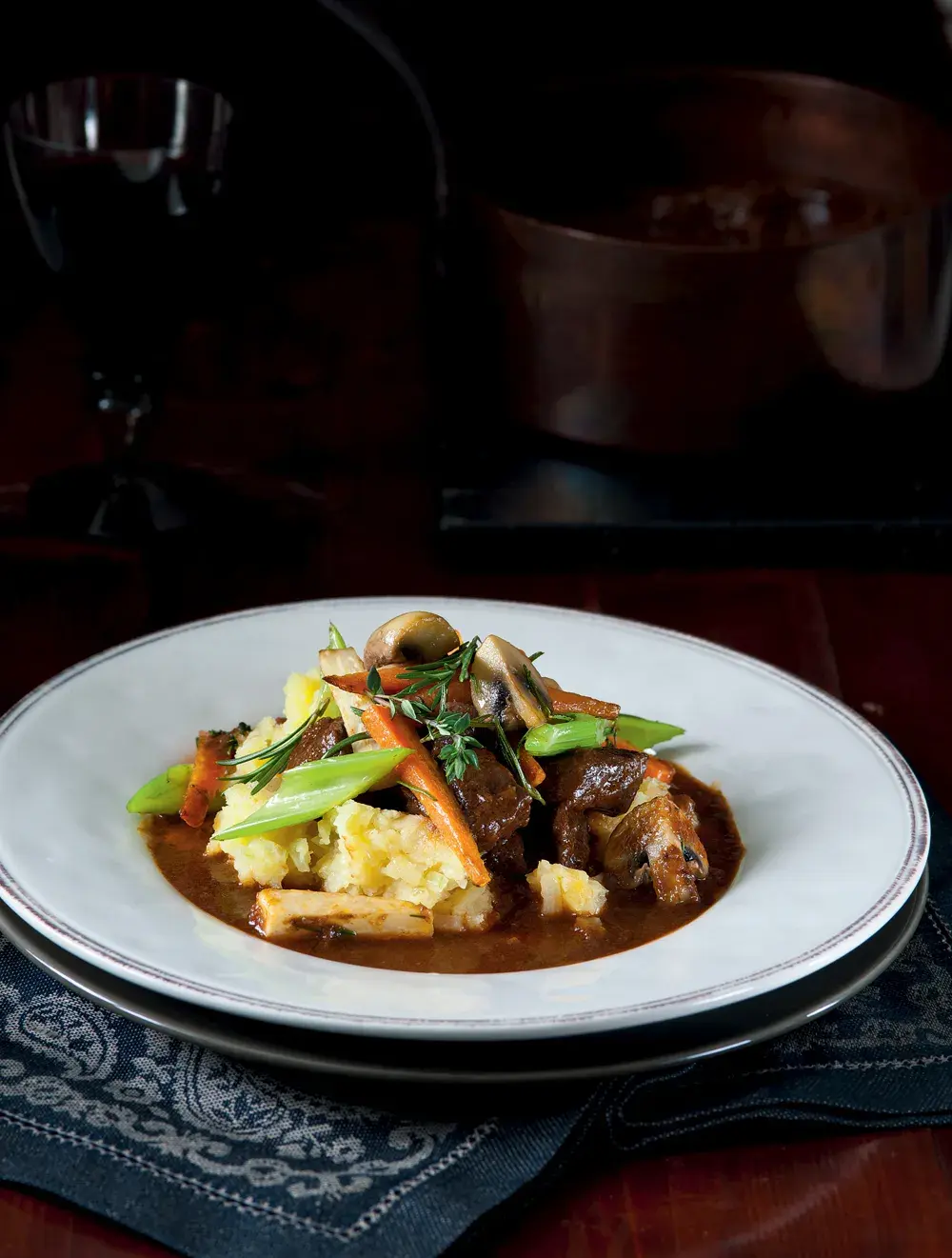 „Hovězí po burgundsku je francouzská klasika všech klasik. Pokud ho ještě někdo z vás neumí, je nejvyšší čas to napravit,“ říká nekompromisně Roman Paulus, michelinský šéfkuchař hotelu Alcron. Hovězí maso se pomalu dusí s kořenovou zeleninou, bylinkami, česnekem, kořením a červeným vínem, až vznikne chuťově silná omáčka a v ústech se rozpadající maso.