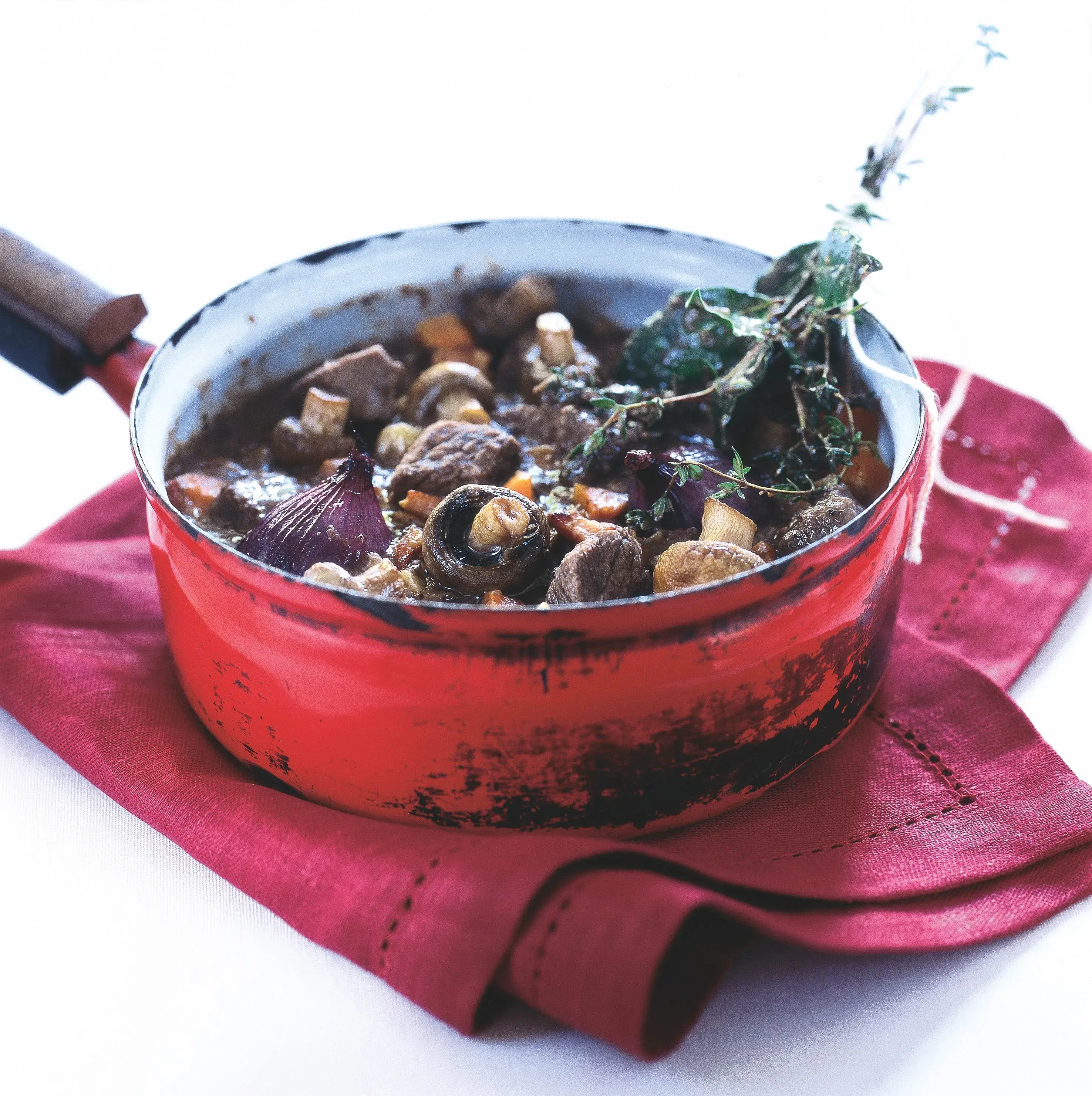 Způsobů, jak připravit hovězí po burgundsku, existuje tolik jako třeba stylů zdobení vánočního stromečku. Všechny ale mají jedno společné: maso se dusí v lázni ze 750 ml dobrého červeného. Radíme mít po ruce rovnou dvě láhve, nejlépe stejné značky – jednu pod maso, druhou k jídlu.