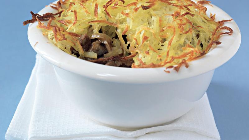 Voňavé překvapení schované pod bramborovým čepcem. Prolomte se křupavou pokličkou z brambor a pochutnejte si na štavnatém hovězím.