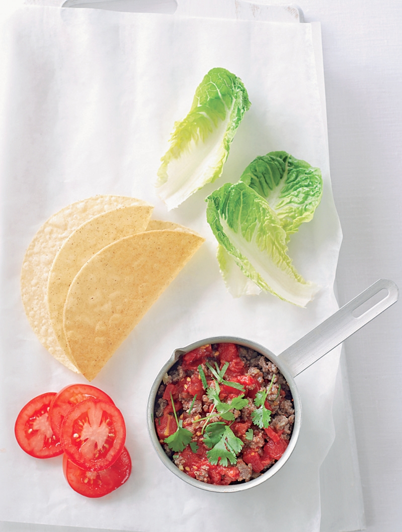 Blesková pikantní večeře v mexickém stylu potěší nejen snadnou přípravou. Hovězí tacos z mletého masa postavte doprostřed stolu a nechte strávníky, ať si sami nabídnou. Pokud chcete, můžete tacos navíc podávat ještě se zakysanou smetanou a guacamole.