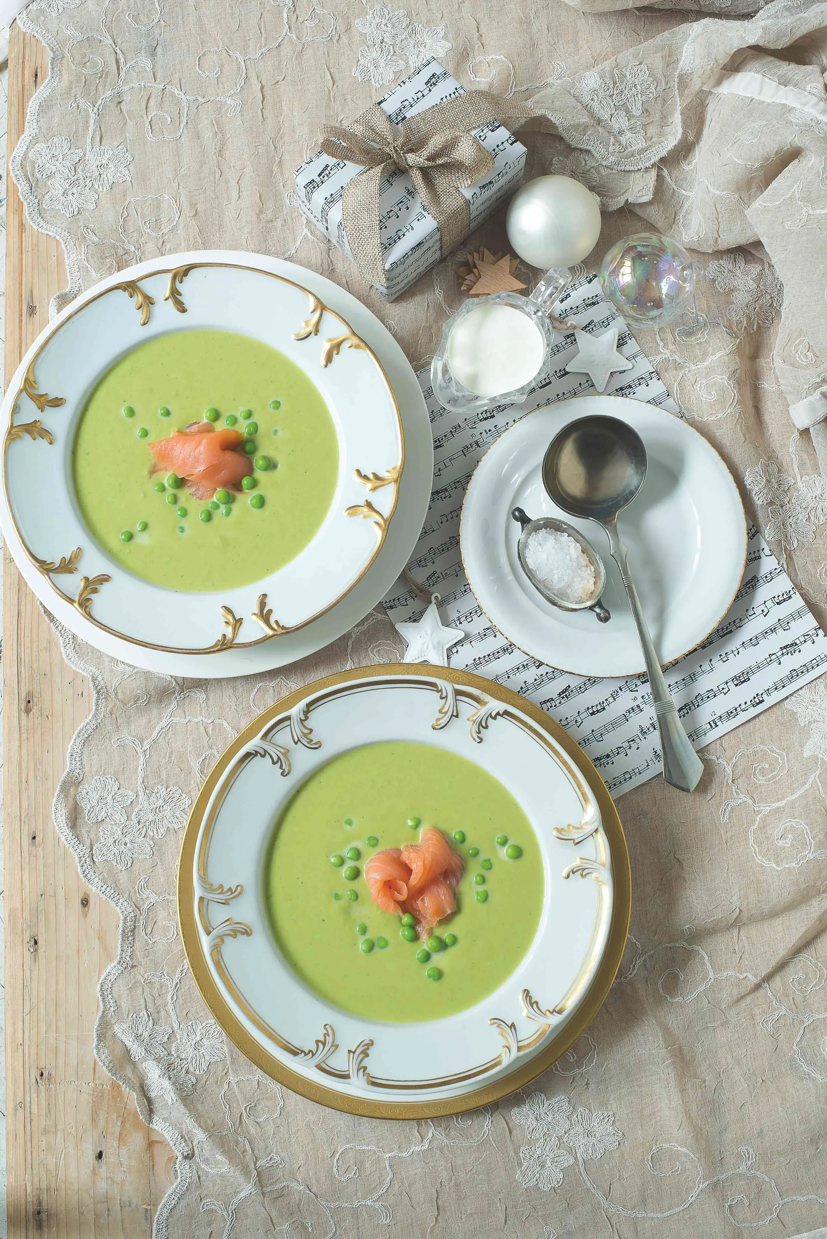 Neholdujete-li rybí polévce, jemná hrášková ozvláštněná sherry a ozdobená lososem je řešení.