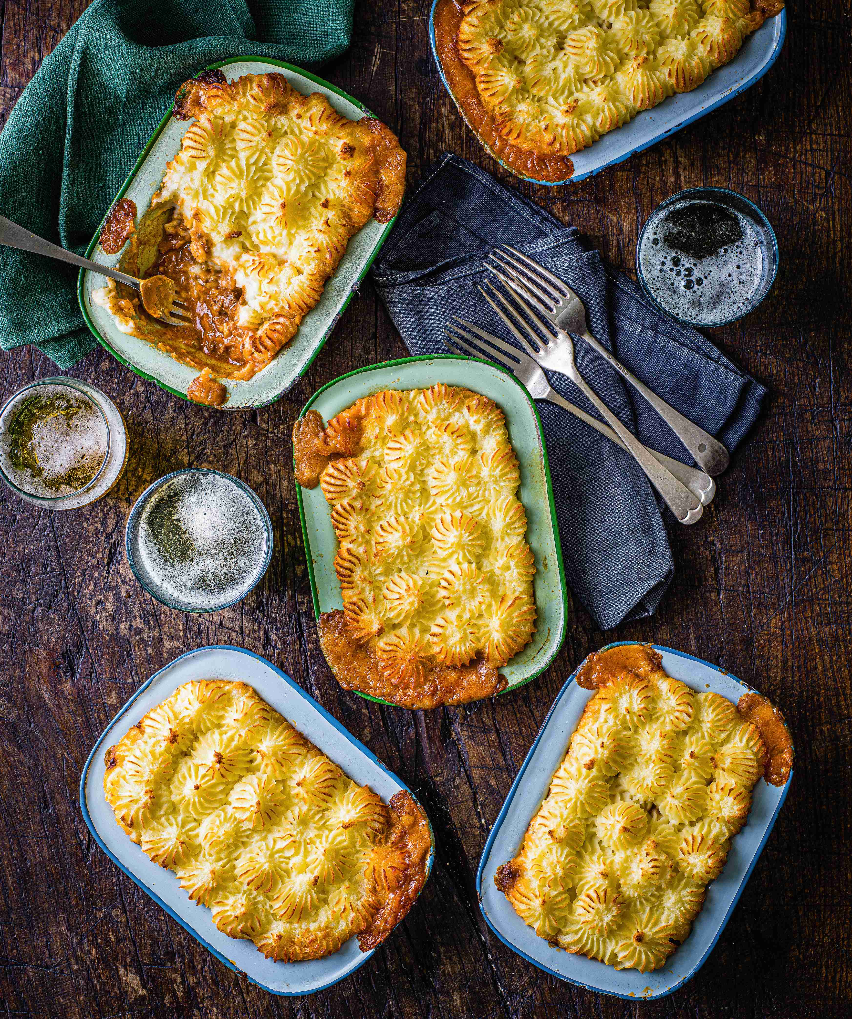 a v tu pravou chvíli páj skládající se z vrstvy mletého masa a hedvábně jemné bramborové kaše vylepšené čedarem upéct.