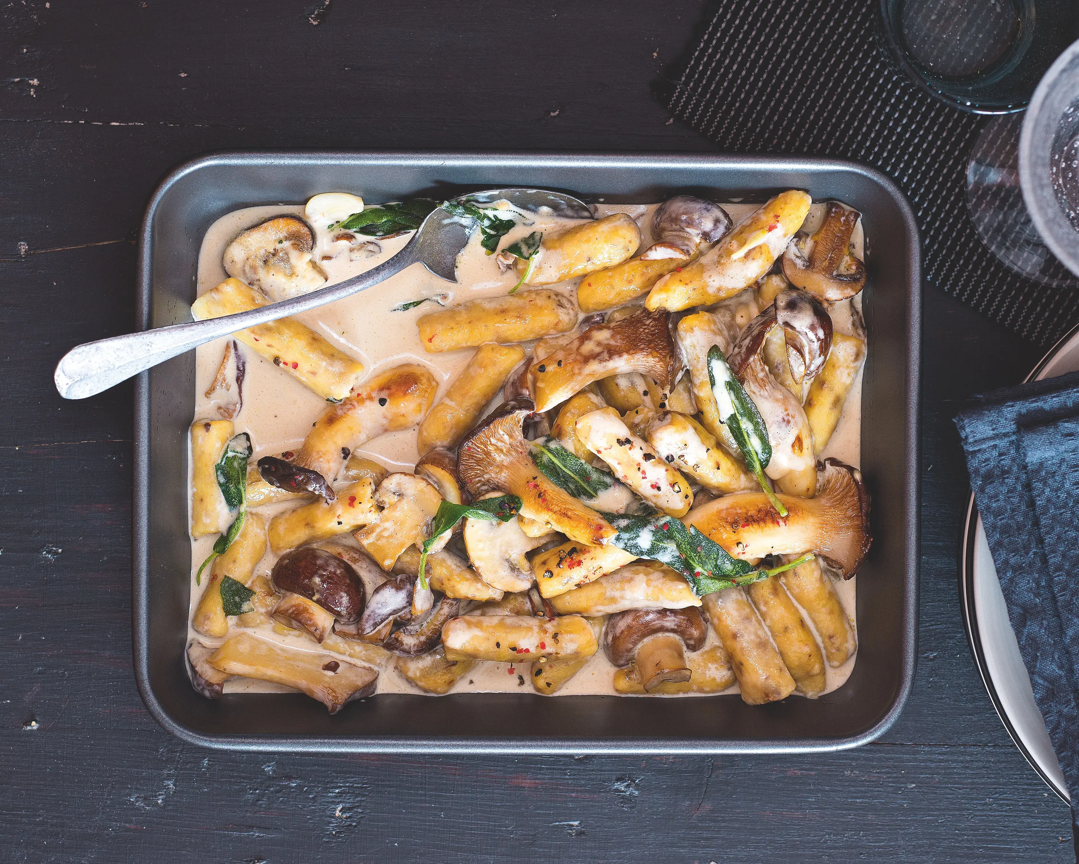 Hříbkové gnocchi v žampionové omáčce jsou skvělým podzimním jídlem. Do základního těsta na bramborové gnocchi jsme přidali sušené hříbky, které houbovou chuť zvýraznily. Pokud jste ale v časovém presu a potřebujete postup urychlit, použijte gnocchi kupované.
