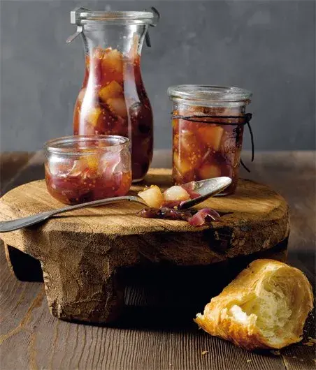 Hruškové čatní se výborně hodí k masu či sýrům nebo si ho jen tak můžete namazat na chleba. Sladkokyselou kombinaci podtrhne naložená perlová cibulka a hrušky se skořicí. Luxusní studená omáčka, se kterou zazáříte.