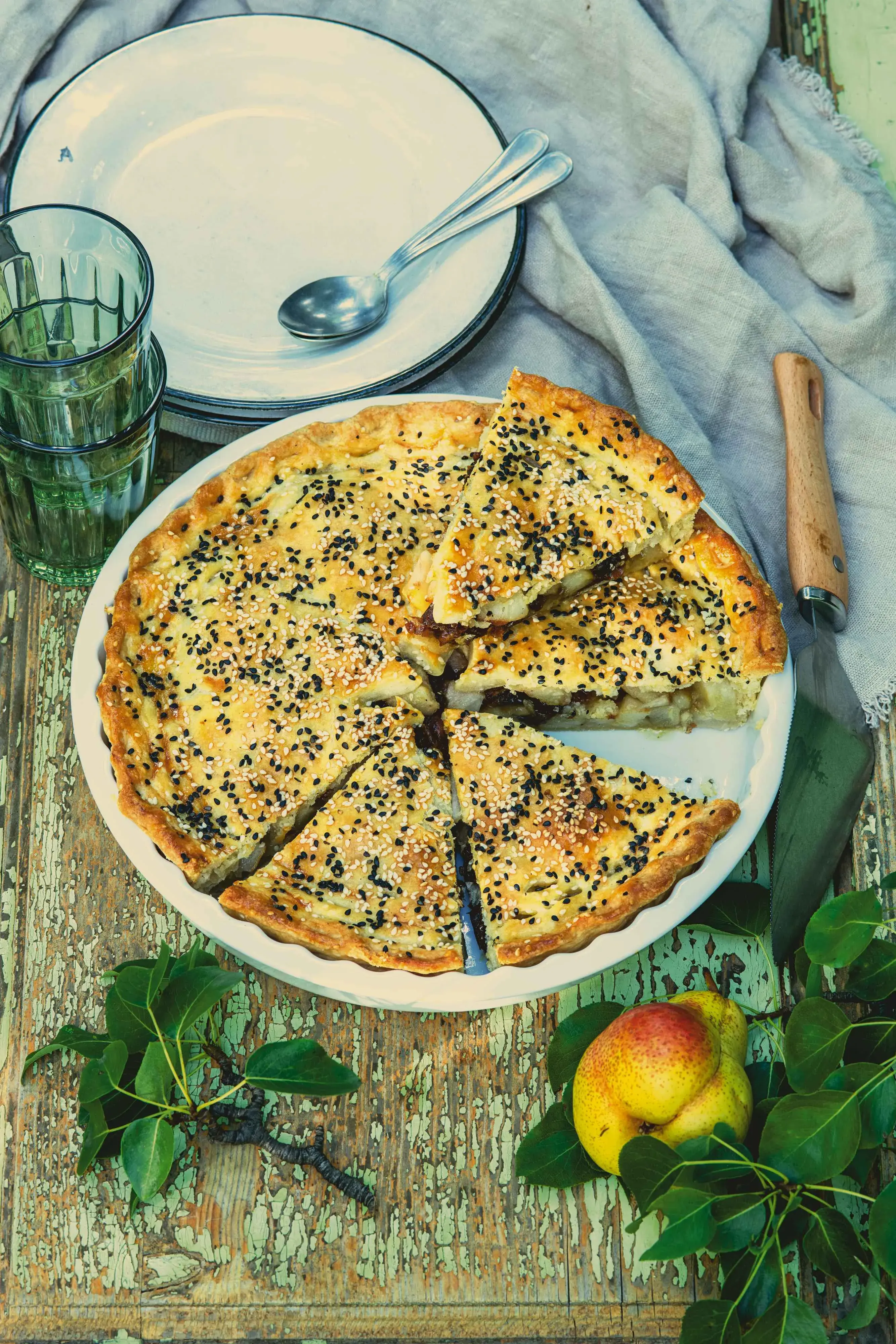 Hruškový koláč je klasika, ale kombinace hrušek, datlí a sezamu je originální a neokoukaná a nejlépe vynikne, když necháte koláč pořádně vychladnout a chutě krásně prolnou.