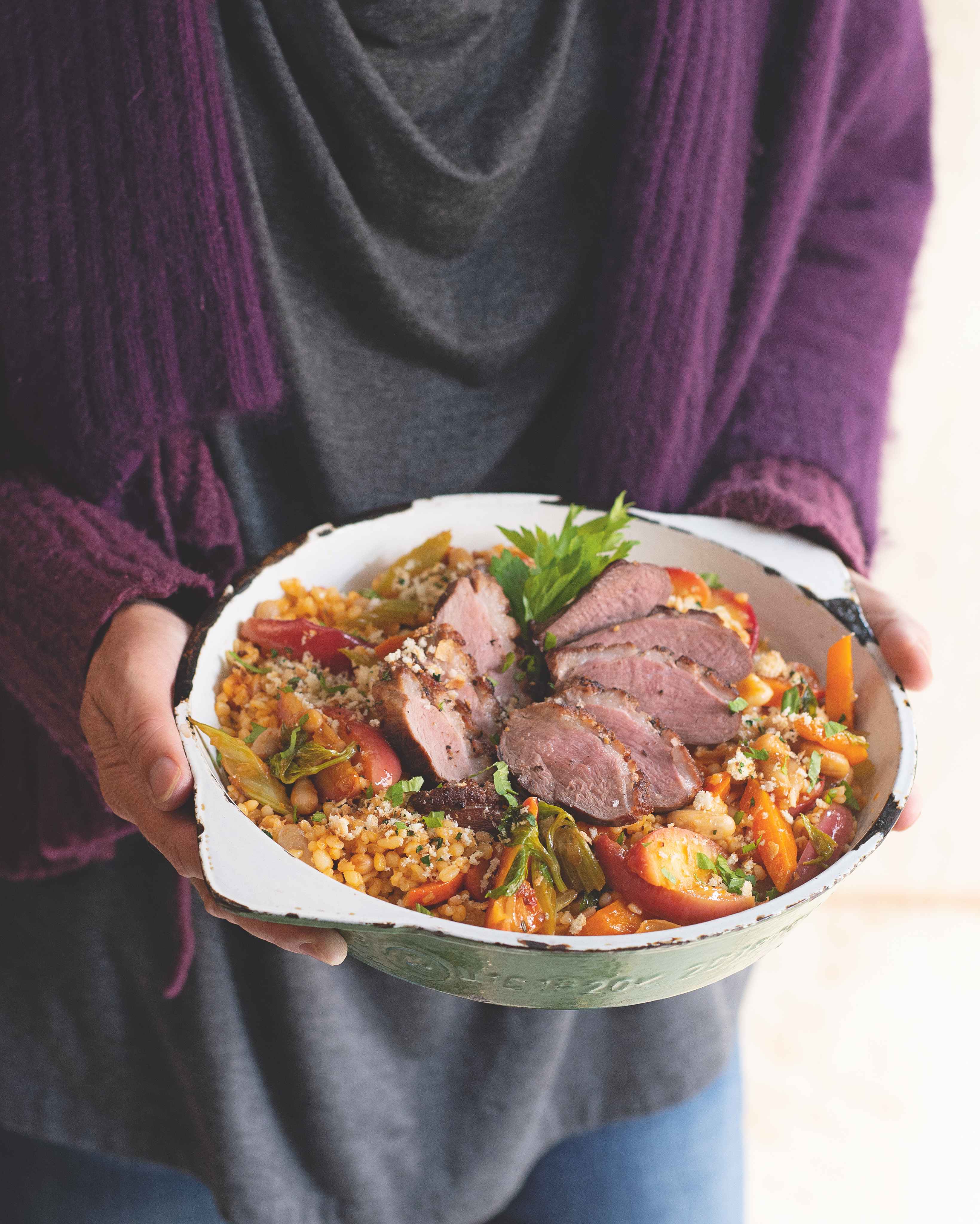 Husí prsa jsou skvělé minutkové maso, které na talíři vypadá velmi luxusně. Můžete je péct zprudka na pánvi i grilovat, nezapomeňte ale vždy nařezat kůži! Jako přílohu jsme tentokrát zvolili bulgur se zeleninou, který lehce evokuje šoulet, ovšem ve skutečnosti je to něco úplně jiného, svěžejšího, lehčího a rychlejšího.