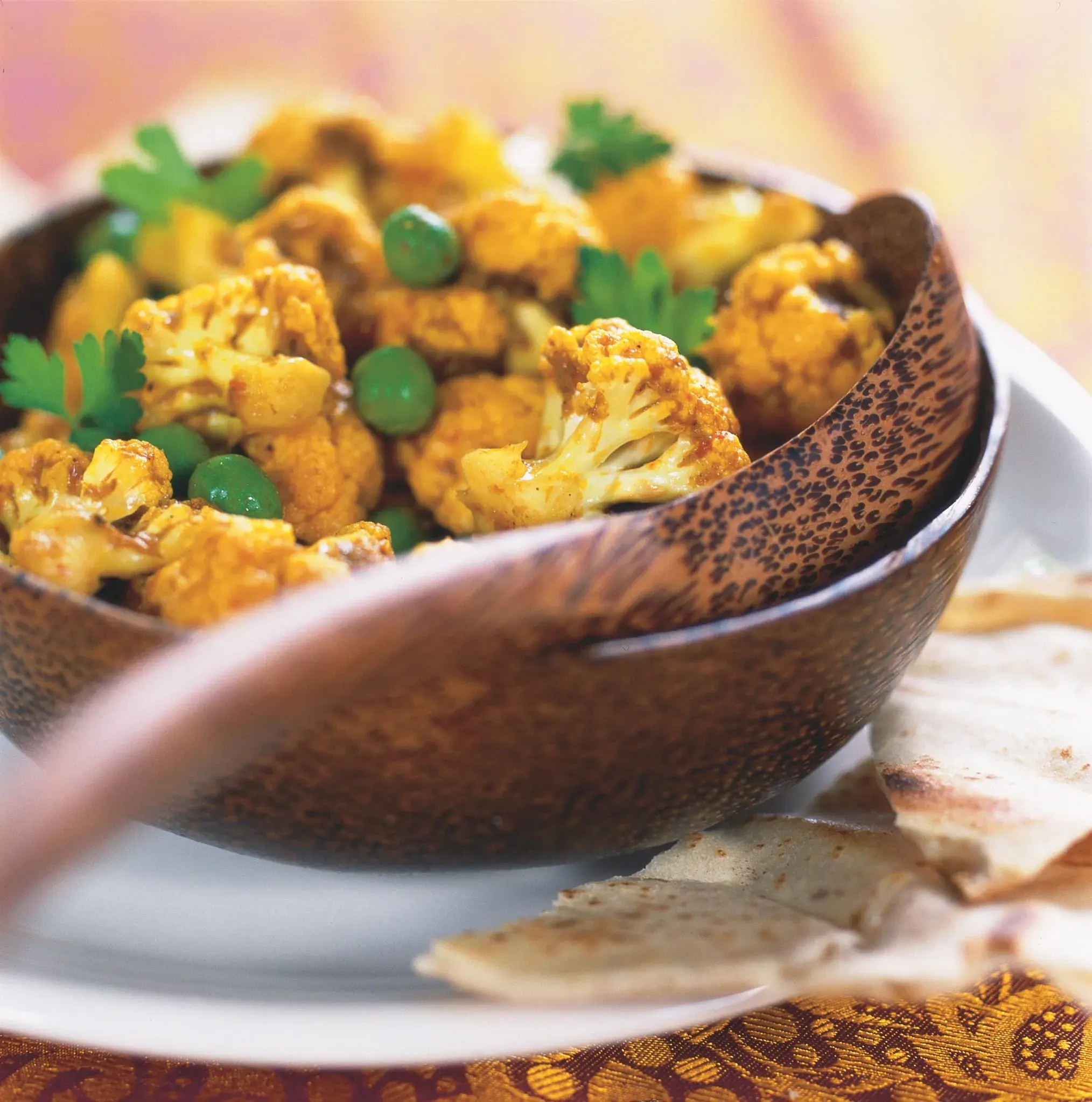 Náš oblíbený květák určitě ocení výlet do jiných krajů a promění se tak v lehké a krásně barevné jídlo, které potěší nejen vegetariány. Indické květákové kari (žluté) s hráškem podávejte s rýží nebo indickým chlebem a ideálním doplňkem je také bílý jogurt.