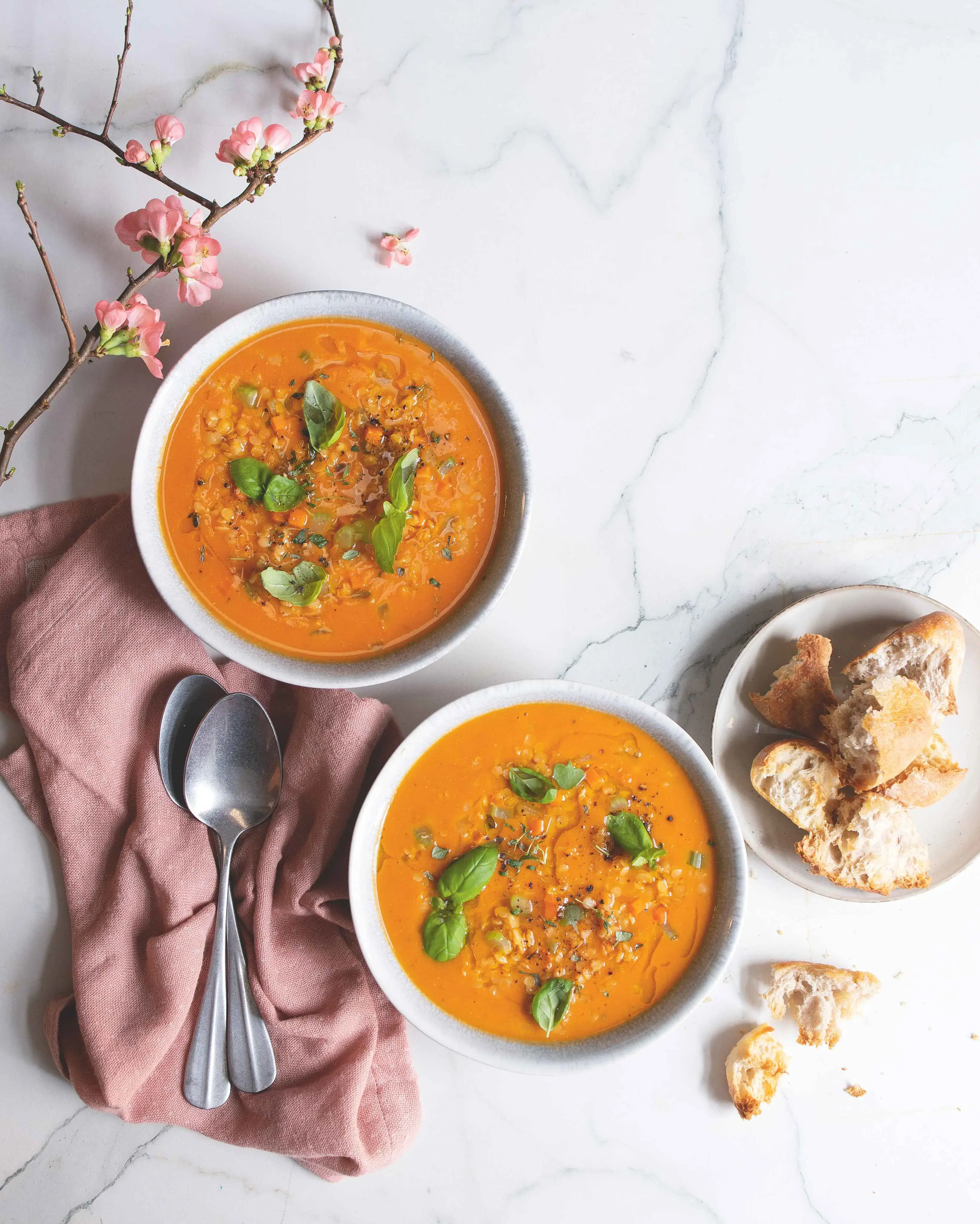 „Italská polévka s červenou čočkou je skvělý způsob, jak do jídelníčku dostat víc zeleniny, luštěnin a vlákniny, aniž by rodina žehrala, že je to moc zdravé,“ radí autorka receptu a odbornice na výživu a potraviny Karolína Fourová.