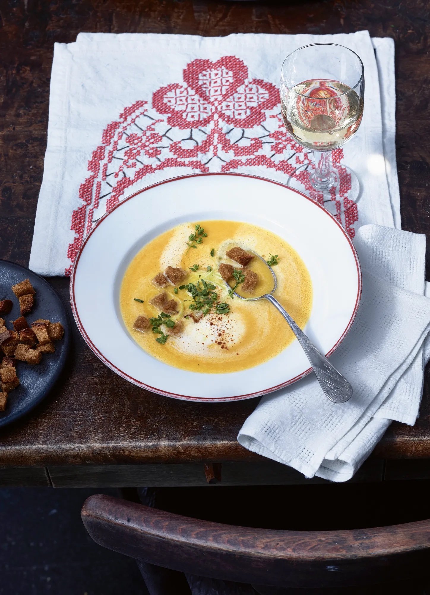 Polévka z moštu? Ano, a překvapivě chutná naprosto báječně! Jablečný mošt krásně vyváží nasládlý zeleninový základ a dodá polévce jemnou ovocnou svěžest. Smetana pak všechno propojí k dokonalé chuti. Recept, který jistě stojí za vyzkoušení.