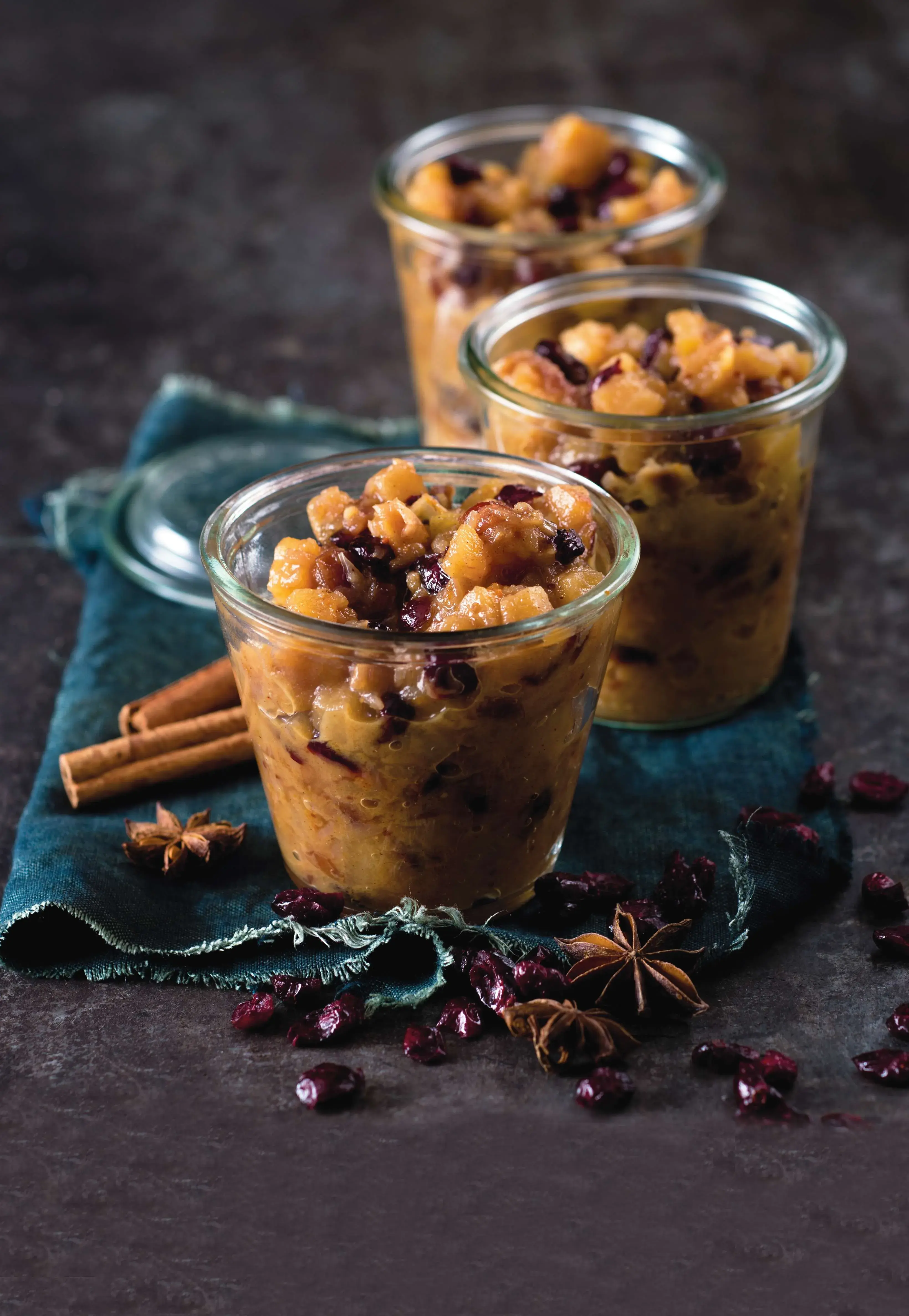 Když už nevíte, co dělat s přebytky jablek ze zahrady, zkuste tohle čatní. Jeho chuť jsme ozvláštnili voňavým kořením, brusinkami a brandy.