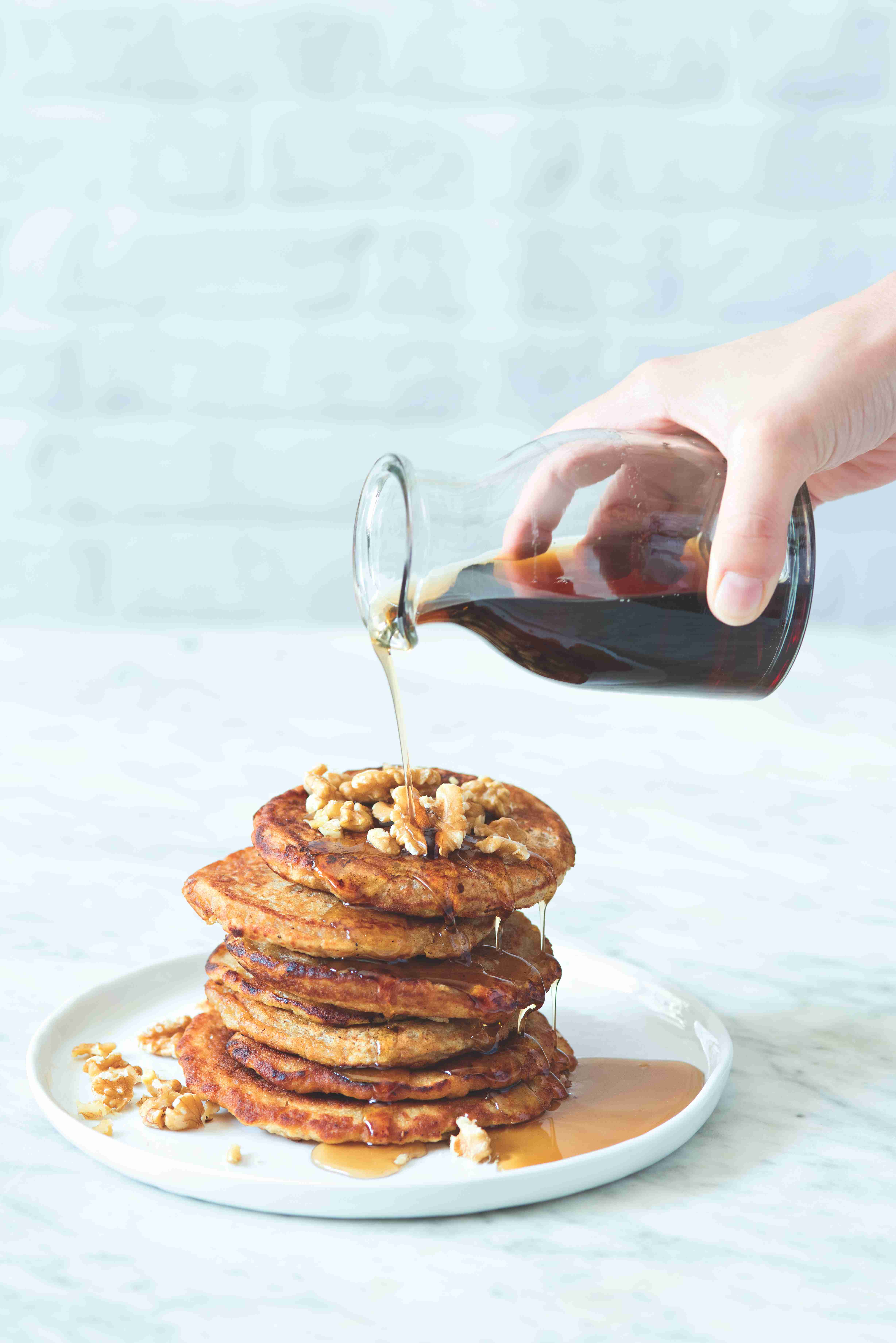 Díky jablíčku nejsou tyhle lívance suché a zároveň si vystačíte s menším množstvím mouky než u běžných receptů. Můžete je podávat i s jinými oříšky – dobré budou třeba čerstvě vyloupané lískové. Nebo je příště zkuste dát namleté přímo do těsta. Jablečné lívance s vlašskými ořechy a javorovým sirupem vám udělají den krásnější.