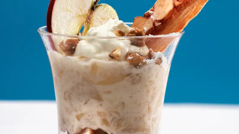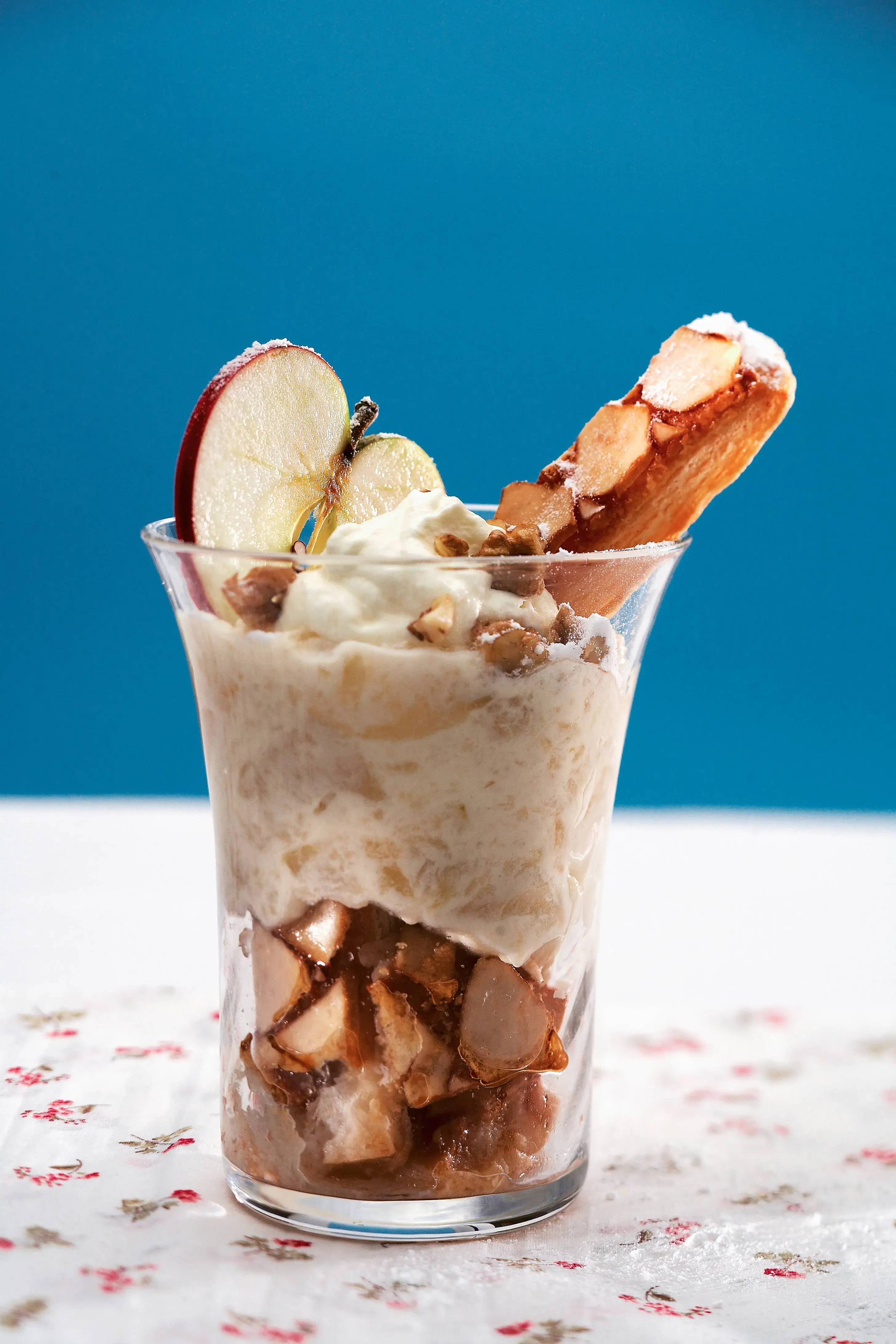 Trio calvados, cider a nakyslá jablka vykouzlí z mascarpone přímo božský krém. Pro děti ale alkohol samozřejmě vynechte!
