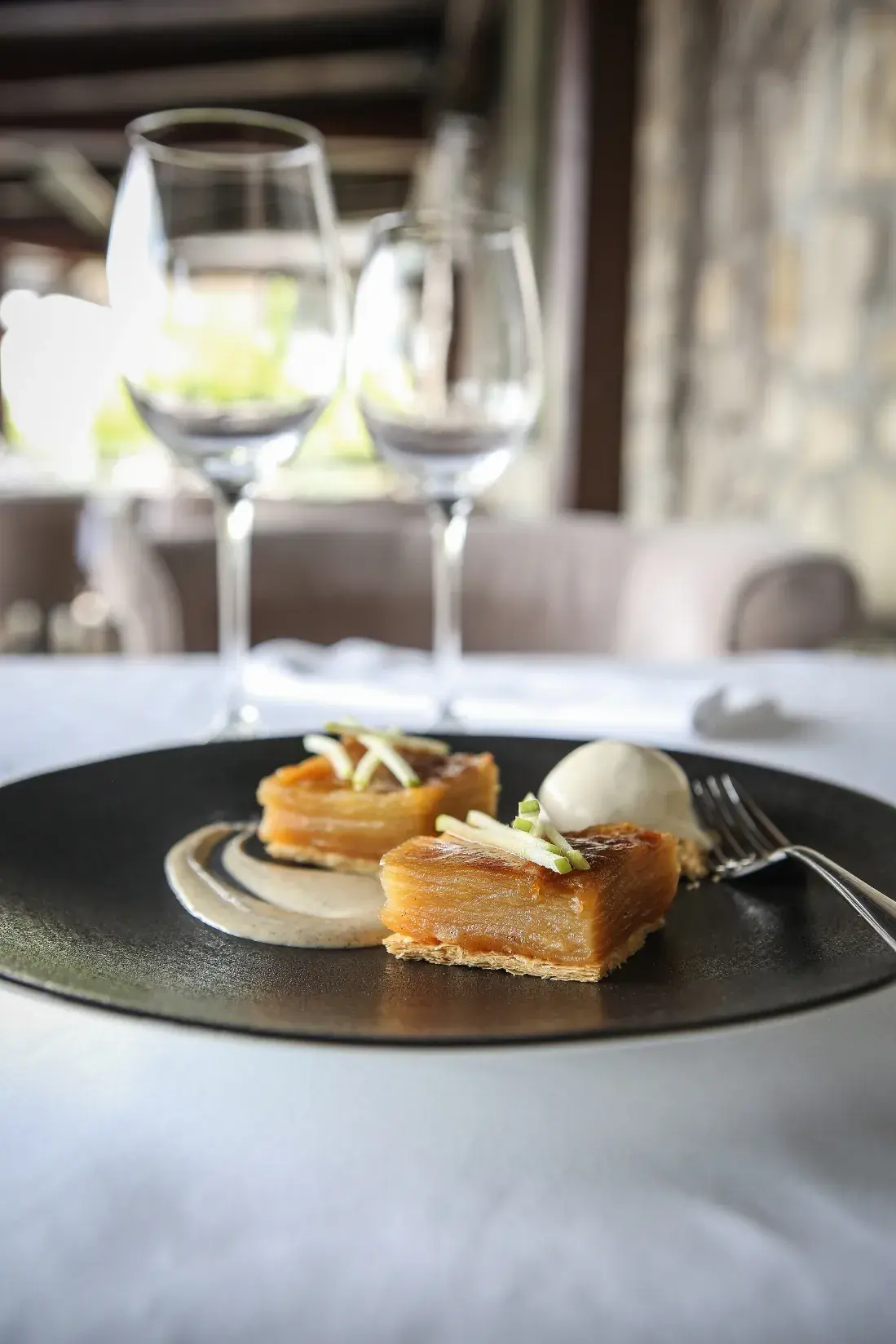 Variace Marka Raditsche na tarte tatin má v sobě kus francouzské elegance i chuti domácího, poctivého štrúdlu. Dlouhé pečení promění jablka a karamel v úžasnou lahůdku.