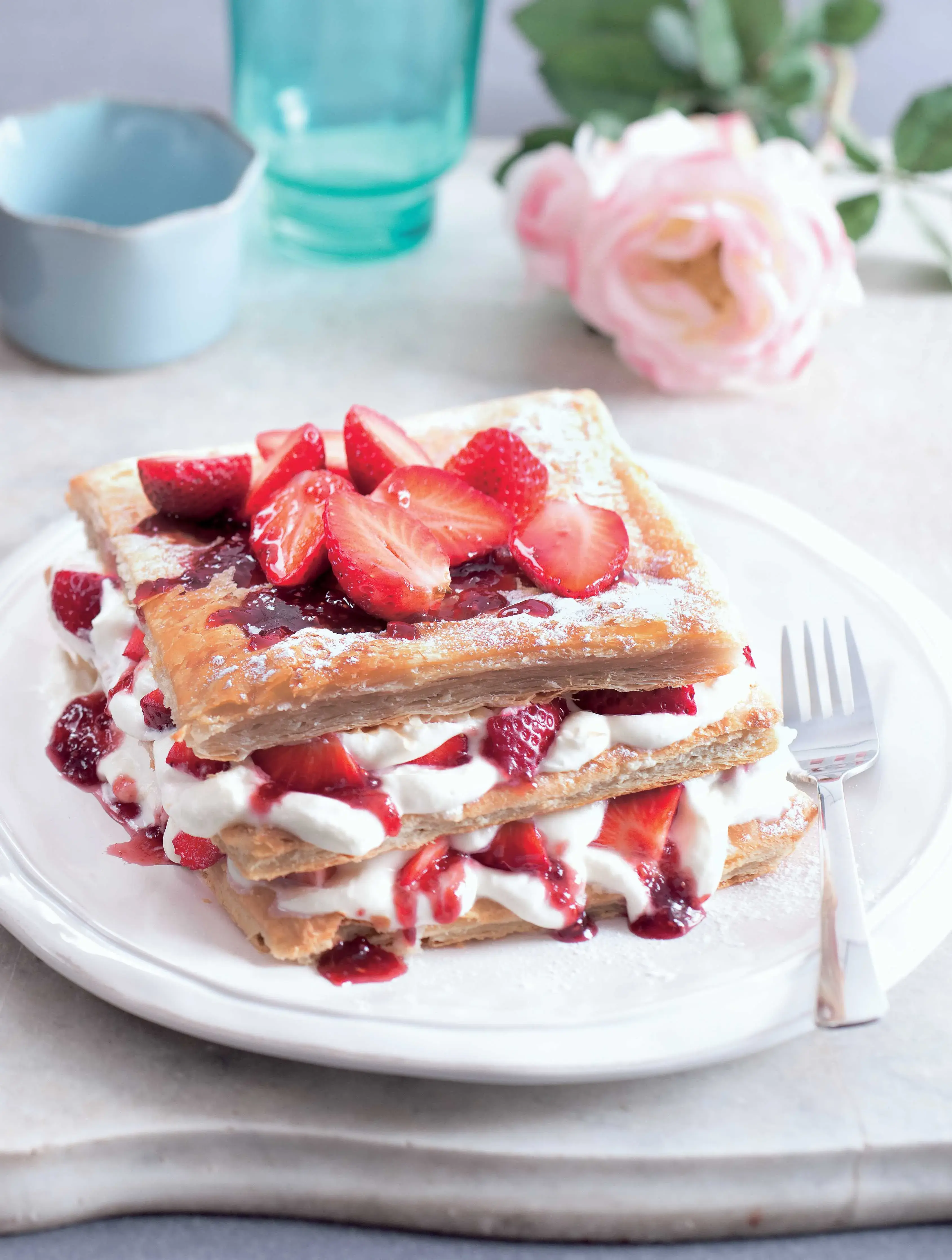 Mille-feuilles je původně francouzský recept ze tří vrstev listového těsta a dvou vrstev krému. V jahodové verzi je oblíbený po celém světě.