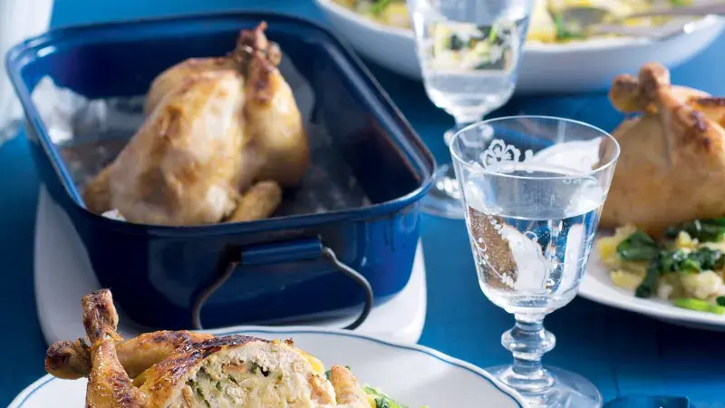 Vykostěné kuřátko je naducané jako balonek, vejde se do něj víc nádivky a líp se porcuje. Nevykostěné drží tvar, ale hrozí, že se kolem páteře hůř propeče. Rozhodnutí je na vás – Titus Eliáš dává přednost vykostěné verzi.