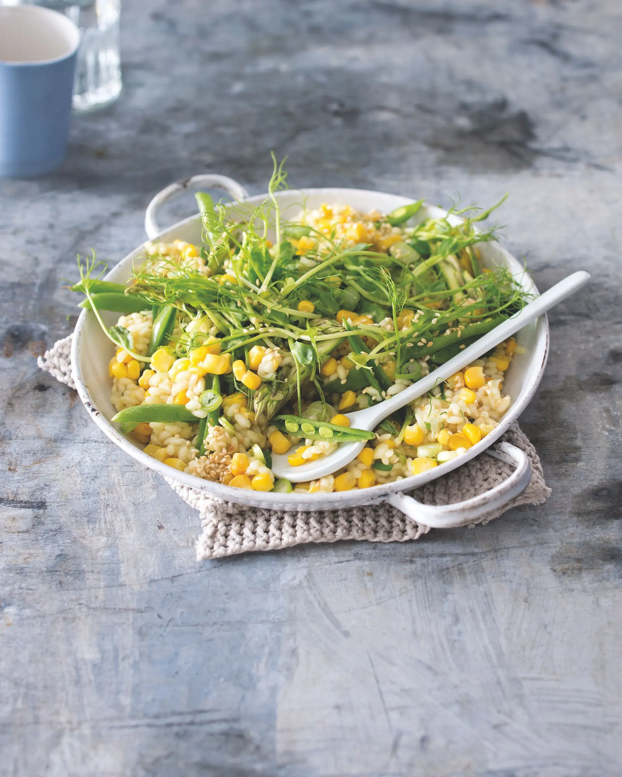 Spojením japonských a italských chutí získáte třeba tuhle svěží jarní večeři. Saké na místě bílého vína korunuje dílo svou zvláštní příchutí.
