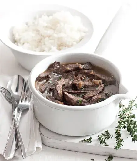 Játra na cibulce s rýží jsou stálicí školních jídelen. A pokud jste na tuto dobrotu už zapomněli, rádi vám recept na vepřová játra připomeneme. Místo běžněji používané majoránky jsme do receptu zvolili čerstvý tymián a ochutili sklenkou koňaku. Ale pokud se chcete držet majoránkové klasiky, doporučujeme přidat ještě stroužek rozetřeného česneku.