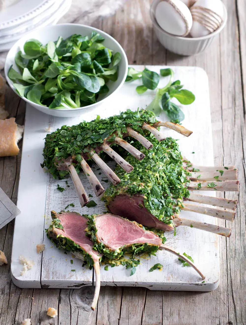 Hřebínek (neboli kotletky v celku) jsme nejprve upekli a teprve potom obalili v bylinkách. Jehněčí má zkrátka zelenou! Jehněčí v bylinkovém kabátku podávejte s lehkým salátkem a čerstvým pečivem. Ovšem stejně dobře budou jehněčí kotlety chutnat třeba i s bramborovou kaší.