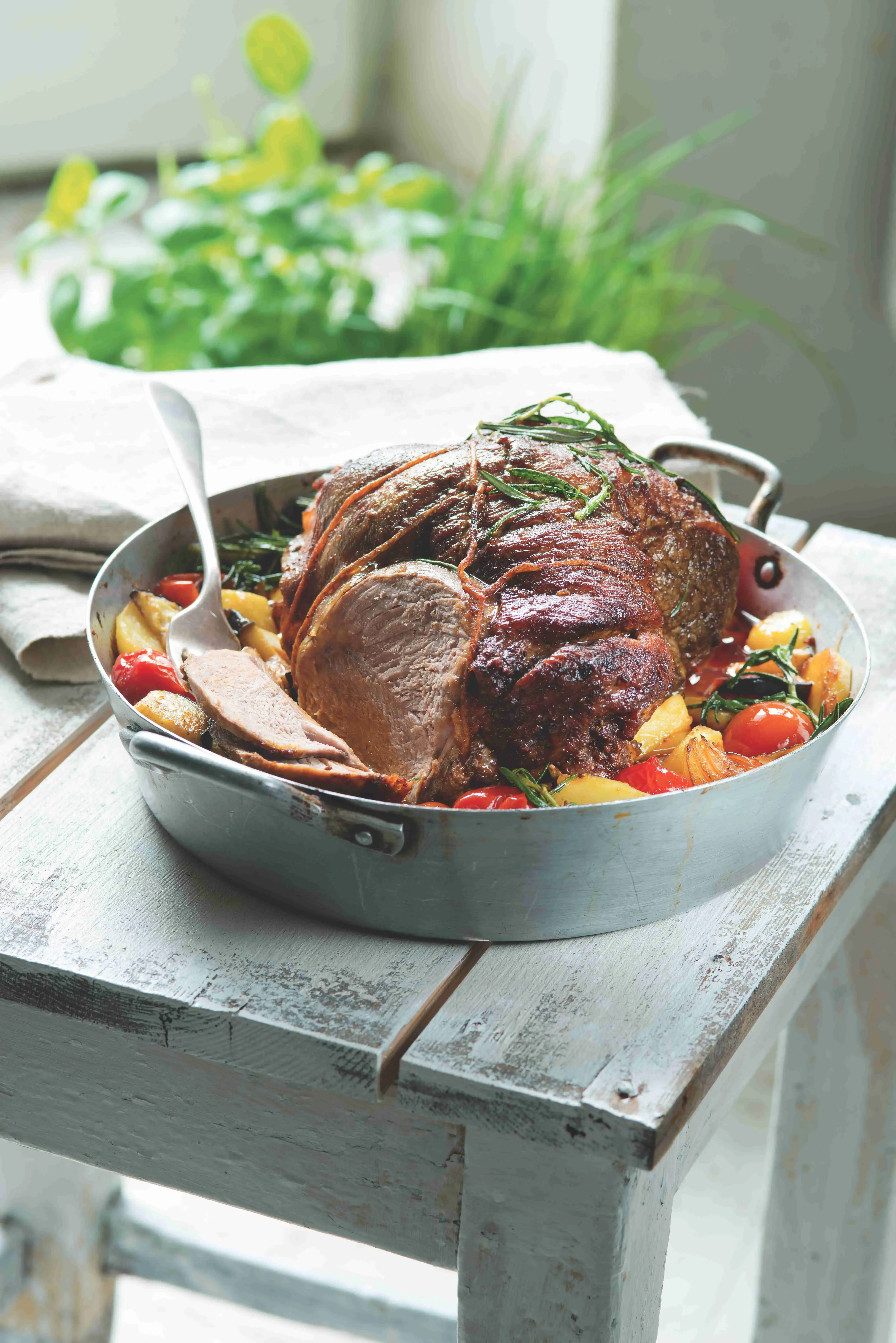 Maso a příloha z jednoho pekáče rovná se ideální víkendový oběd. Nepatří-li jehněčí mezi vaše favority nebo pro vás není dostupné, můžete obdobně připravit třeba krůtí stehna.