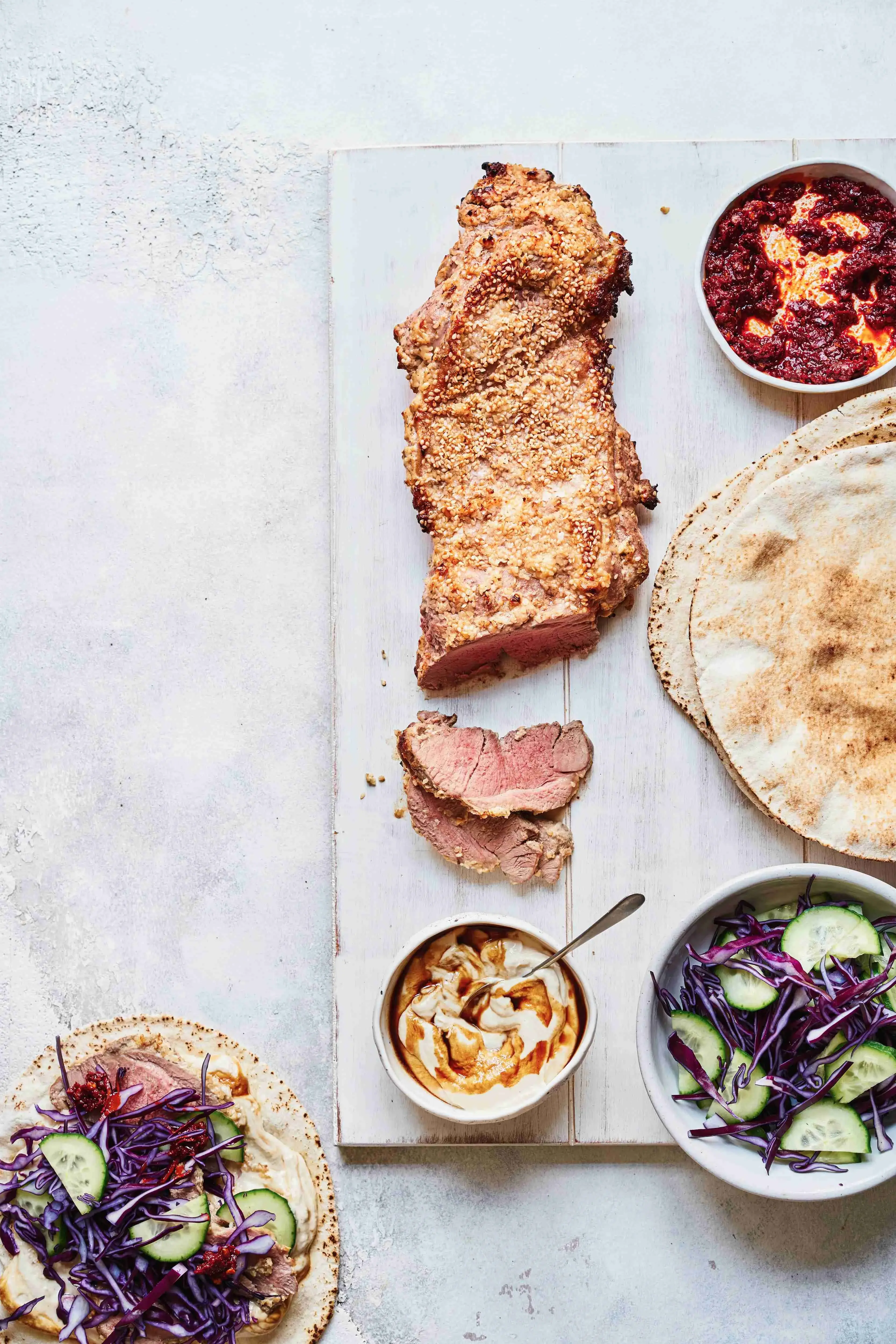 Z jehněčí kýty nemusí být jen tradiční nedělní pečínka, ale i perfektní jídlo do ruky! Stačí ji tence nakrájet, přidat zeleninu, skvělou omáčku a pita chleba.