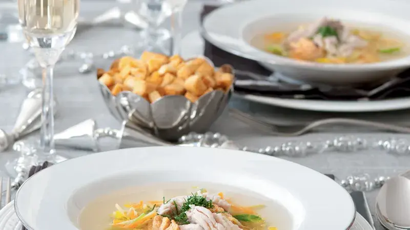 Pokud nemáte svůj rodinný recept na kapří polévku, vyzkoušejte tuhle zlatavou lahůdku s kořenovou zeleninou a kapustičkami. Podávat ji můžete s opečenou houskou.