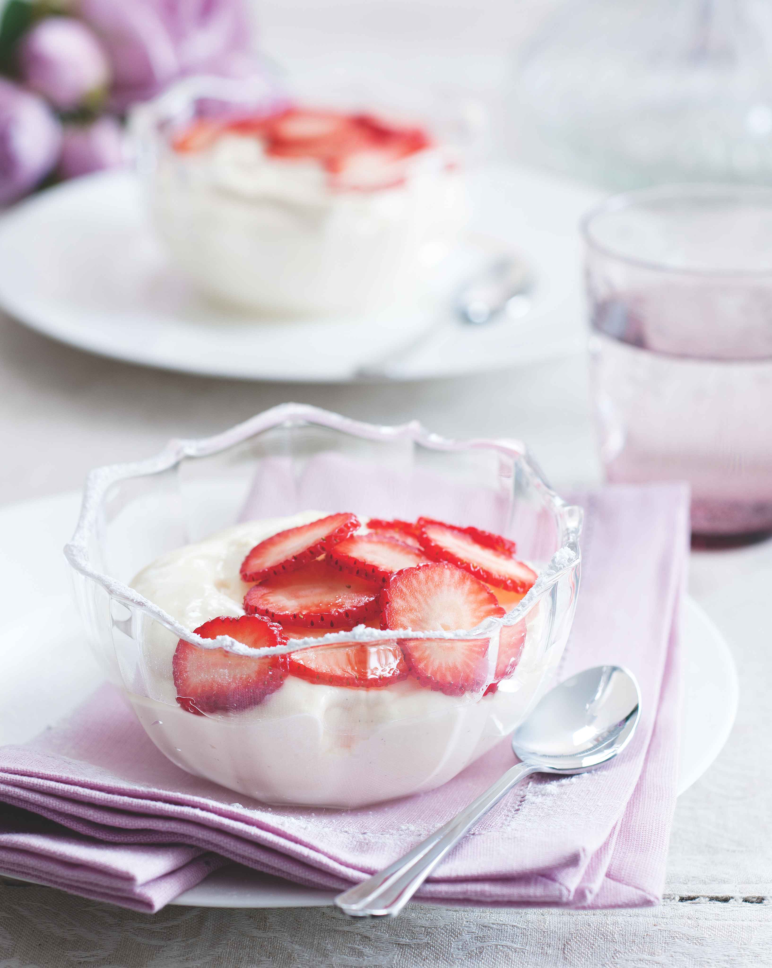 Cukr do pudinku dejte podle chuti. Počítejte však s tím, že až do krému přimícháte tvaroh, na sladkosti něco ztratí. Jemný krém zdobený jahodami je bez lepku, ale pokud přeci jen chcete, přidejte do něj piškoty. Buď slepené džemem, nebo jen namočené v oblíbeném likéru. Nejjednodušší recept na jahodový dezert, jaký známe...