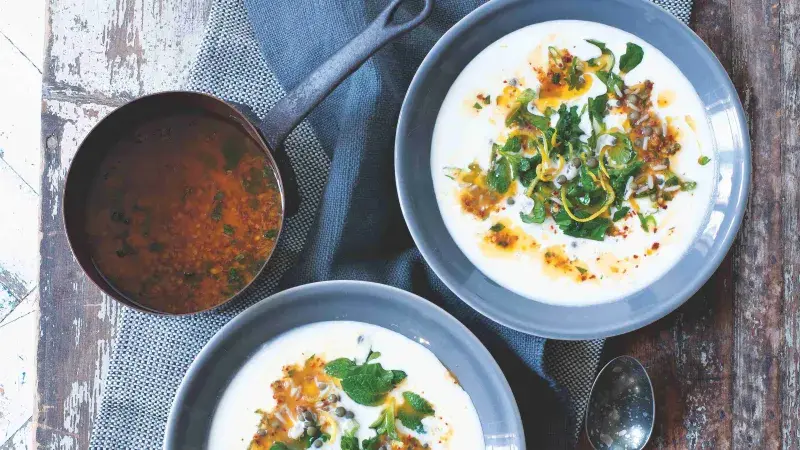 Tahle polévka je plná zdravých surovin a svým vzhledem připomíná první jarní výhonky, které vykukují ze sněhu – prostě skvělá volba právě na tohle období! Můžete ji ještě vylepšit pošírovaným vejcem, natrhaným pečeným kuřecím masem nebo kousky uzeného pstruha.