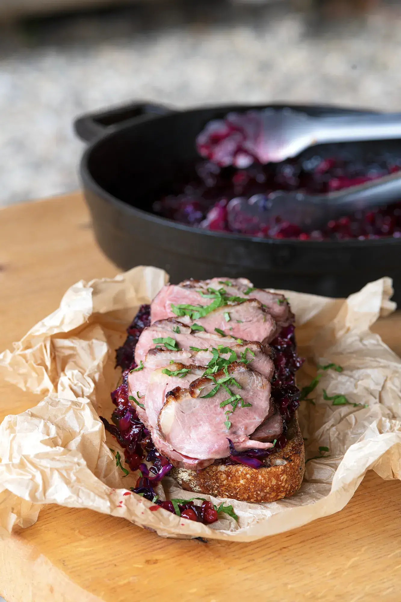 „Kachna nepatří mezi má oblíbená masa, ale tohle jídlo předčilo mé očekávání. Kváskový chleba, sladké zelí a šťavnatá, růžová prsa. Úplně jsem to vdechla!“ Hodnotí recept Darina Sieglová, redaktorka Apetitu.