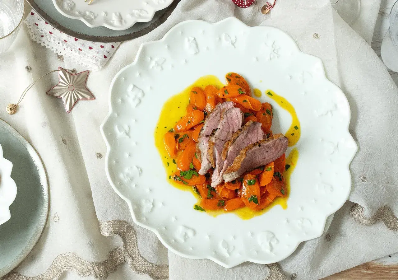 Kachní prsa se salátem z pečené mrkve jsou elegantním a originálním štědrovečerním předkrmem, který oslní svou chutí i jednoduchostí přípravy. Potřebujete jen pár kvalitních surovin, přičemž většinu práce obstará trouba. Sladké tóny pečené mrkve skvěle doplňují mandarinky, které dodávají jemnou kyselkavou svěžest. Šťavnatá kachní prsa pak dokonale harmonizují celý pokrm a povyšují ho na slavnostní úroveň.