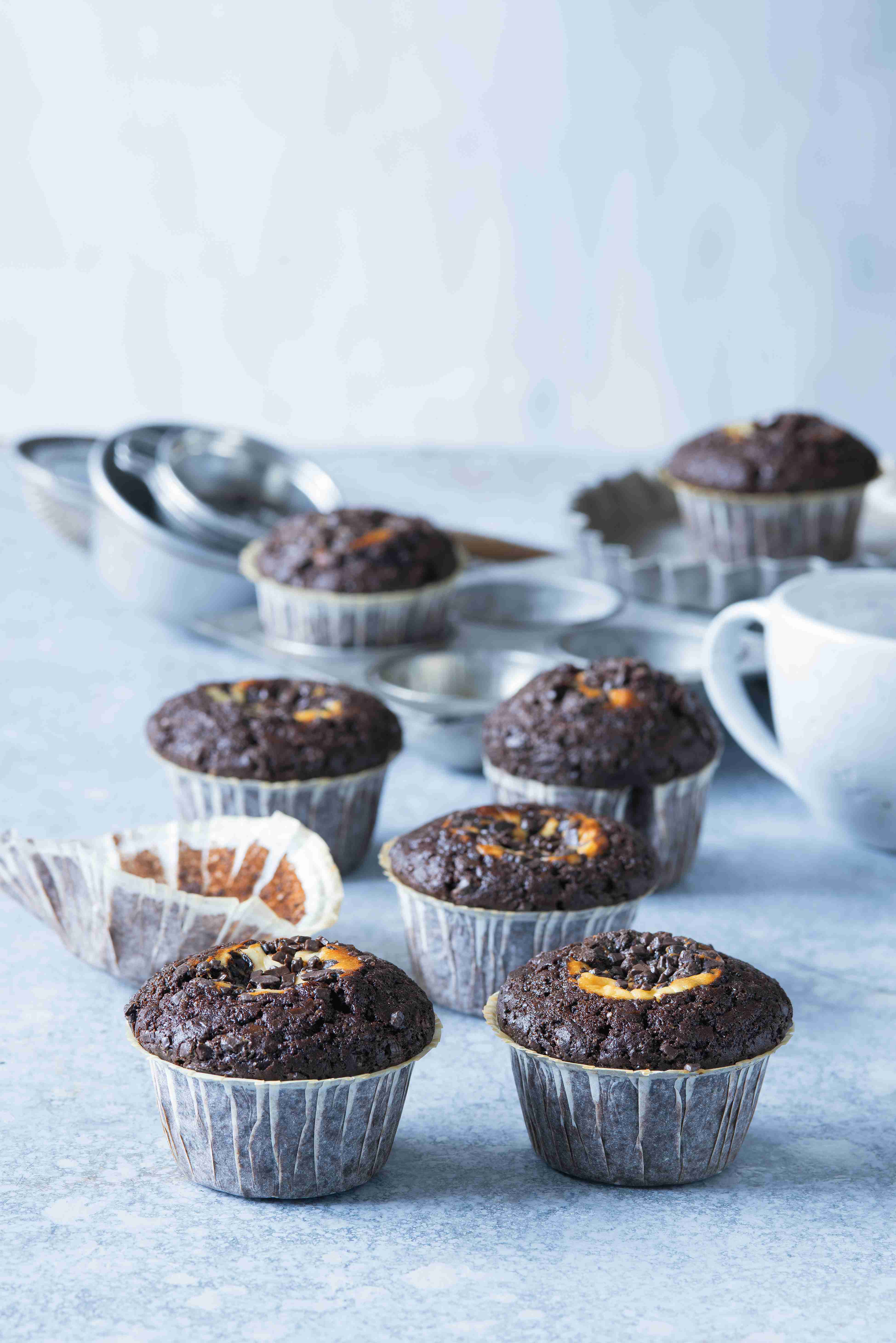 Když nevíte, co upéct, udělejte kakaové muffiny! A pokud vás ty běžné omrzely, zkuste je naplnit jemnou tvarohovou náplní, která muffiny ještě více zvláční, a navíc tak do moučníku dostanete trochu bílkovin.