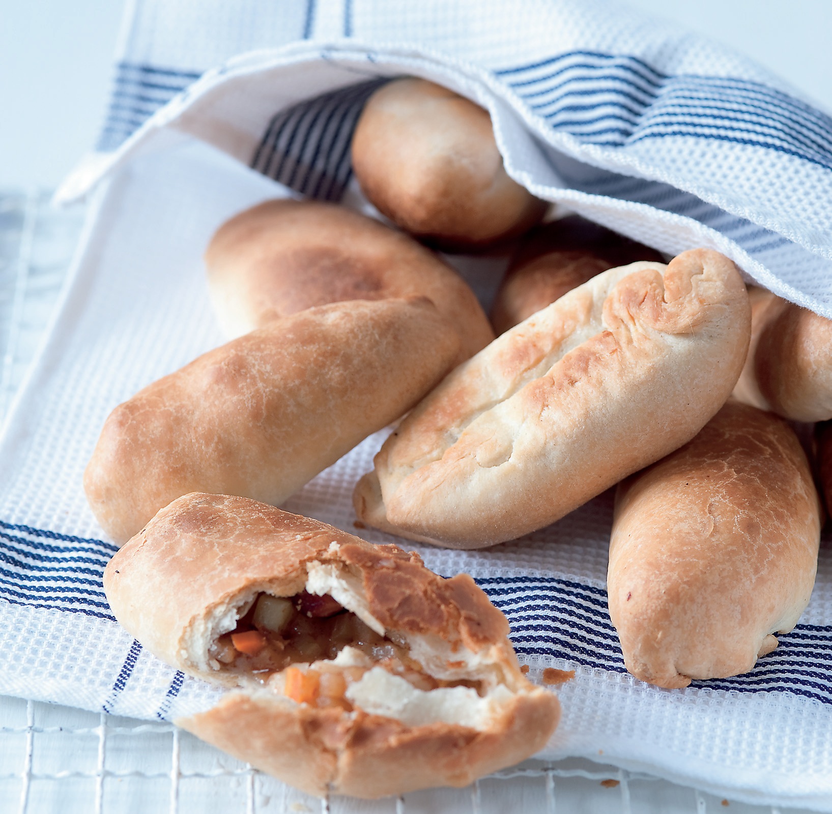 Takovéhle taštičky prý jedli finští horníci. Chcete-li, označte tvarováním nebo ornamentem z těsta, který konec kapes je sladký. Náplně se ale dají poznat i podle vůně.