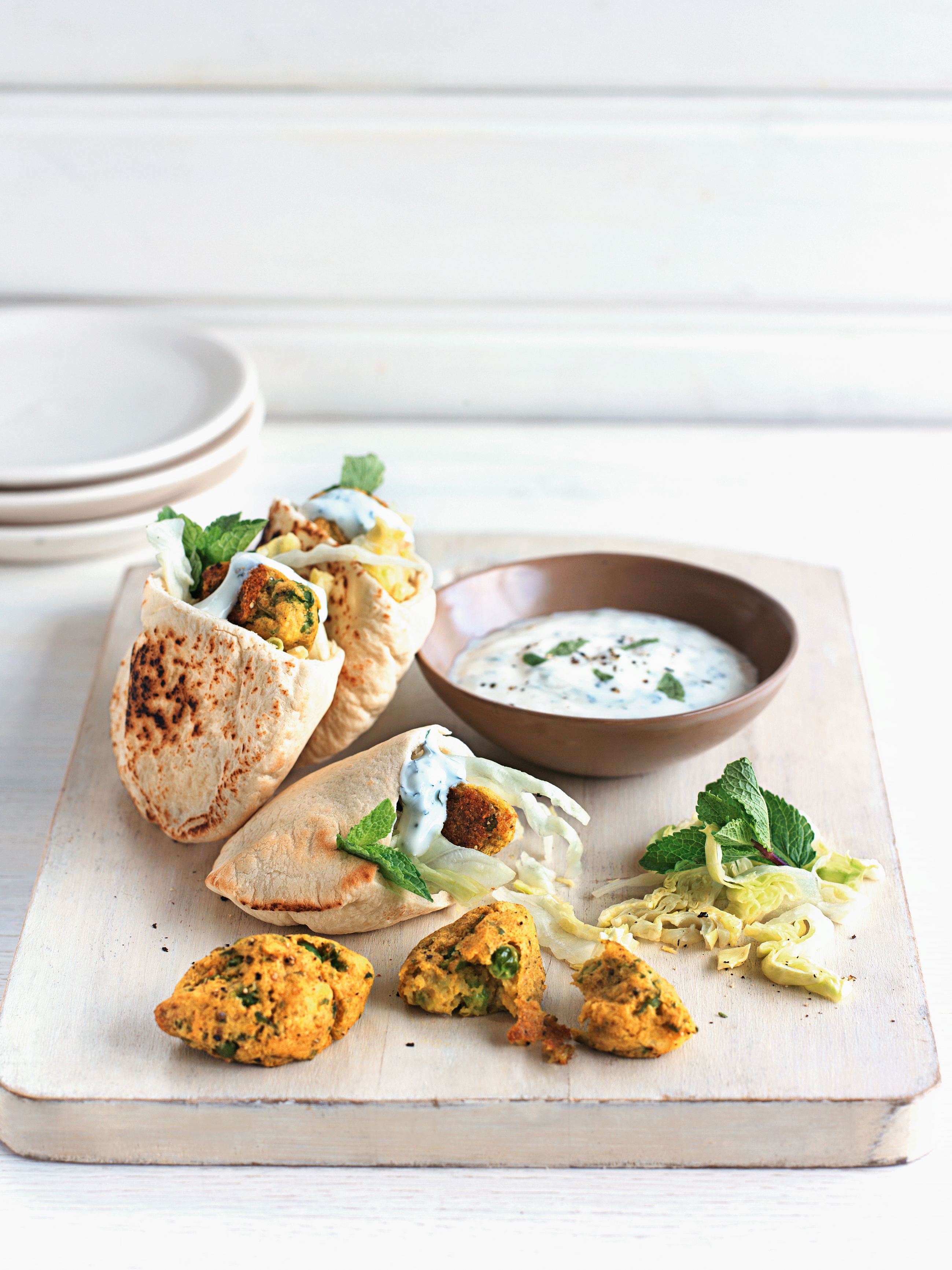 Dozlatova pečené šišky plněné hráškem. Podávejte s jogurtem a chlebem pita.