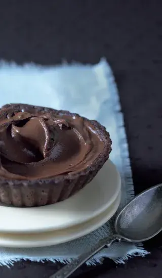 Vánoční cukroví s vůní kávy. Kontrast mezi tmavou náplní a světlým těstem je velmi dekorativní. „Přidání kávy ale vylepšilo i chuť,“ říká o svém receptu food stylistka Milena Volfová. Karamelové košíčky si teď můžete upéct i vy.