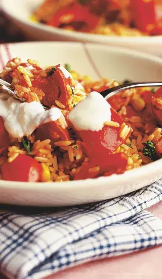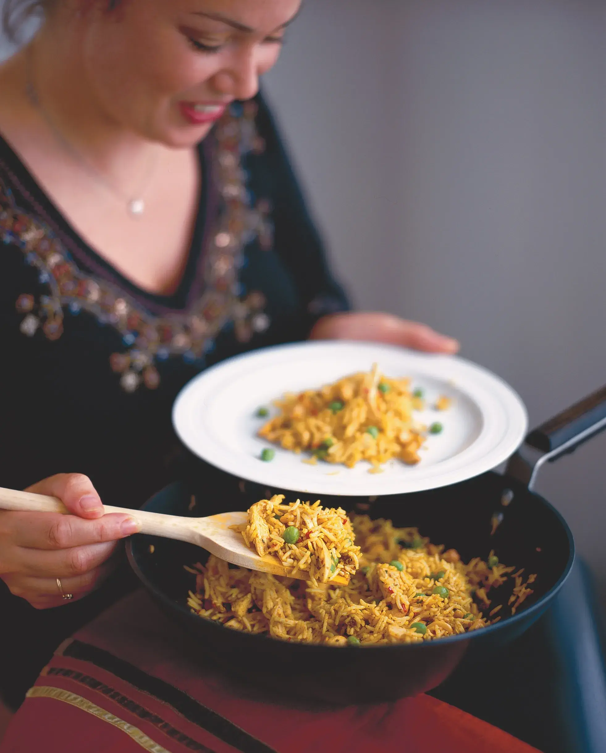 Připravte si snadný rýžový pokrm s chutí Indie! Na kari rýži použijte vařené nebo pečené maso z předchozího dne. Je to skutečně elegantní způsob, jak zpracovat zbytky kuřete zároveň z nich připravit další hlavní jídlo. Milovníci ostrého mohou do kari rýže přidat i nasekanou chilli papričku.