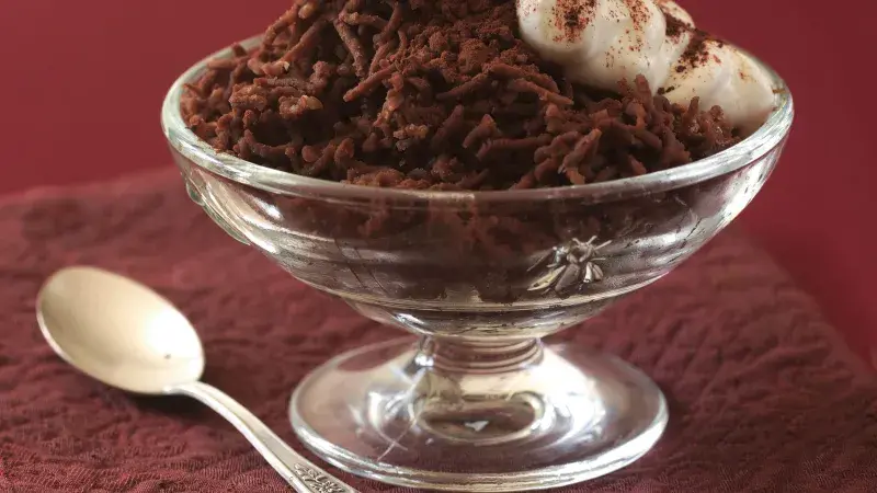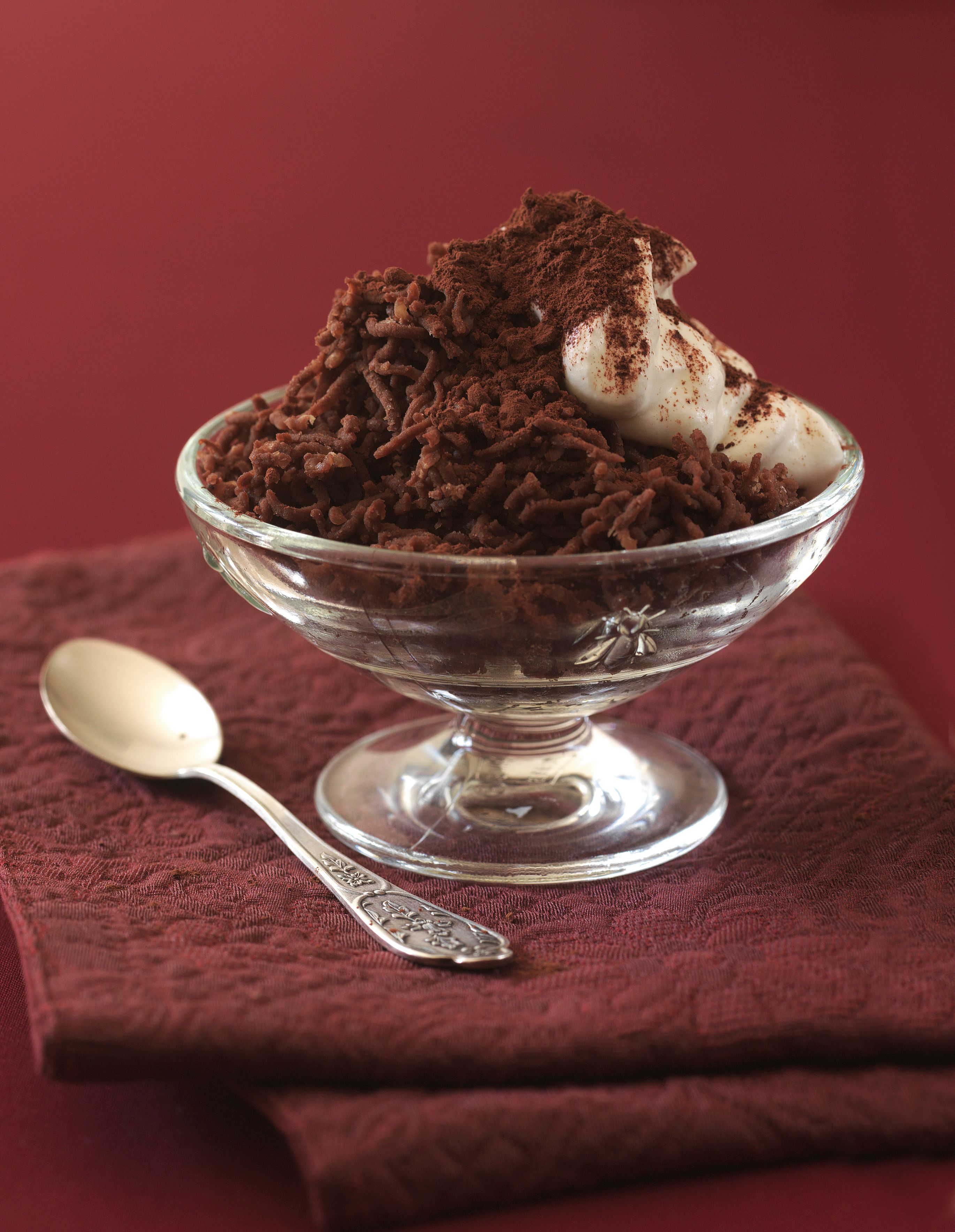 V Itálii mu říkají montebianco – šlehačkou zasněženým vrcholkem totiž pyré připomíná horu, kterou známe jako Mont Blanc.